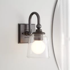 For a sophisticated statement fixture, look no further than the cathedral-inspired Stonehouse Outdoor Entrance Wall Sconce. Decorative vertical fretwork supports the lamp’s sloped roof, which shields its single bulb from outside elements. Made of durable aluminum, the Stonehouse will mount stylishly on an exterior wall.