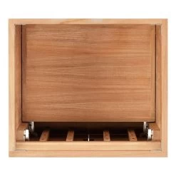 For those seeking a compact statement piece in their bathroom, look no further than the 24″ Aliso Teak Vanity. A natural finish lets the teak wood construction shine while minimal black hardware, horizontal planked doors, and tapered legs add mid-century modern charm. Behind the spacious double doors is an adjustable shelf to provide a customized fit for toiletries. Magnetic catches and soft-close hinges offer smooth, lasting functionality to finish off the Aliso’s thoughtful design.