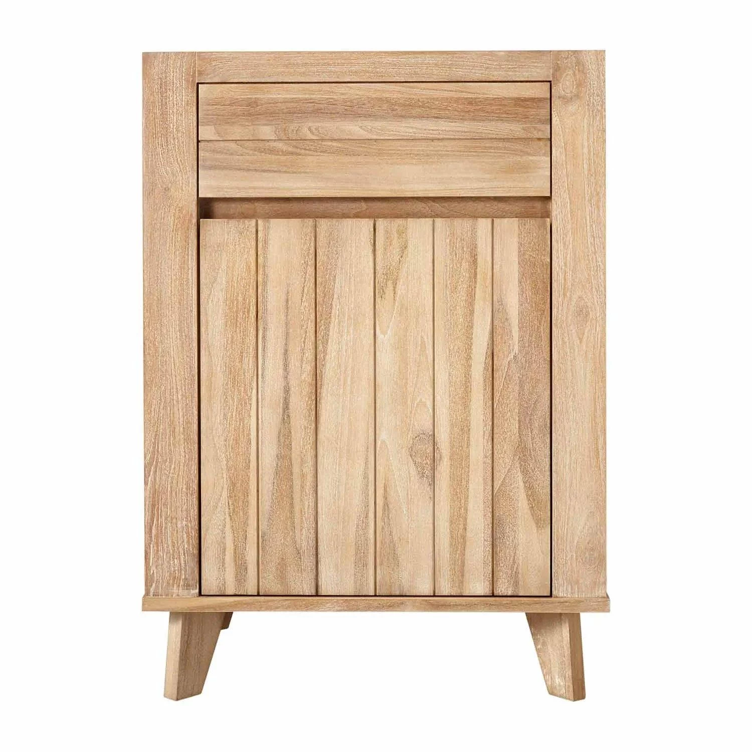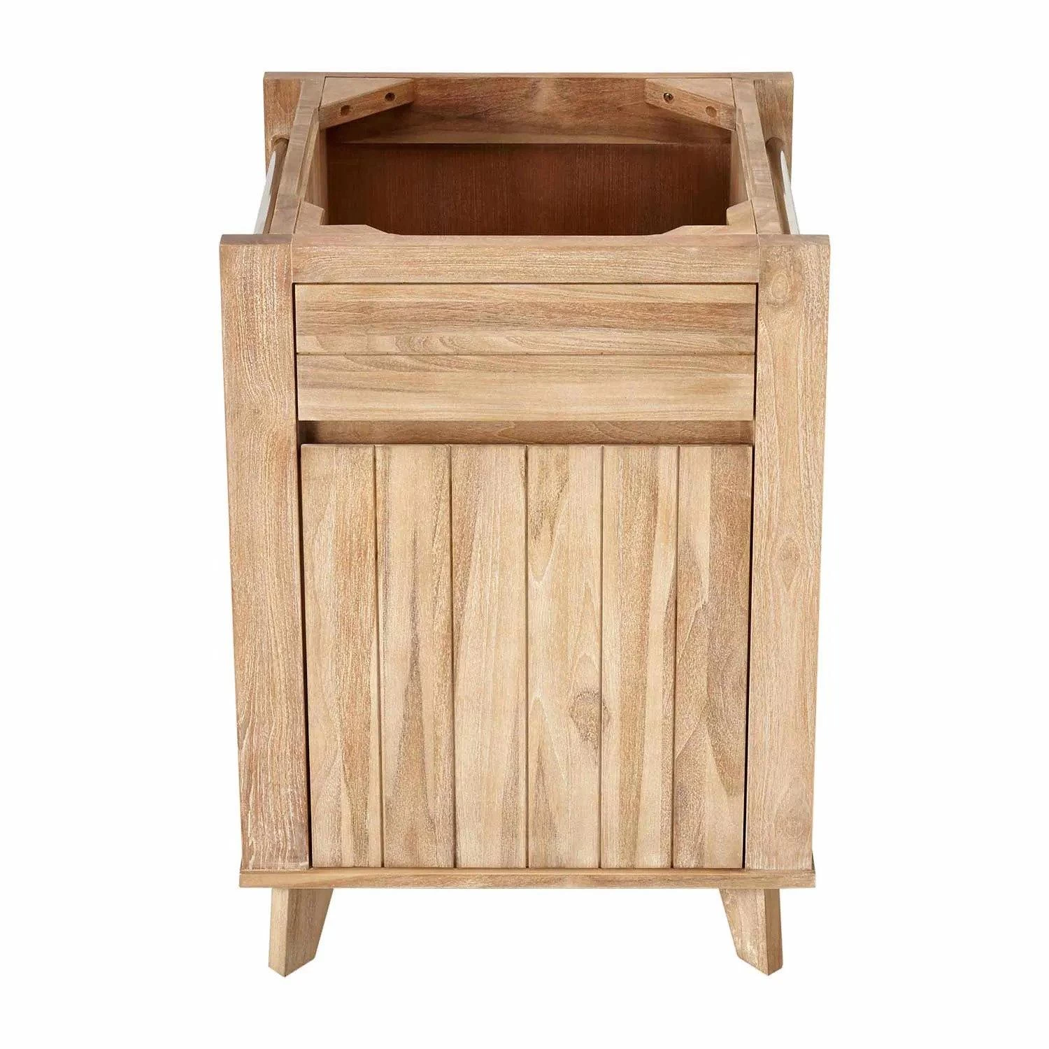 The 24″ Antioch Teak Vanity is a great fit for a modern bathroom. The design of this cabinet is beautifully understated, with minimal embellishments needed to showcase its up-to-date look. A whitewash finish covers the wood and places the wood grain on full display. Stainless steel towel bars serve as welcome accents for this natural vanity.
