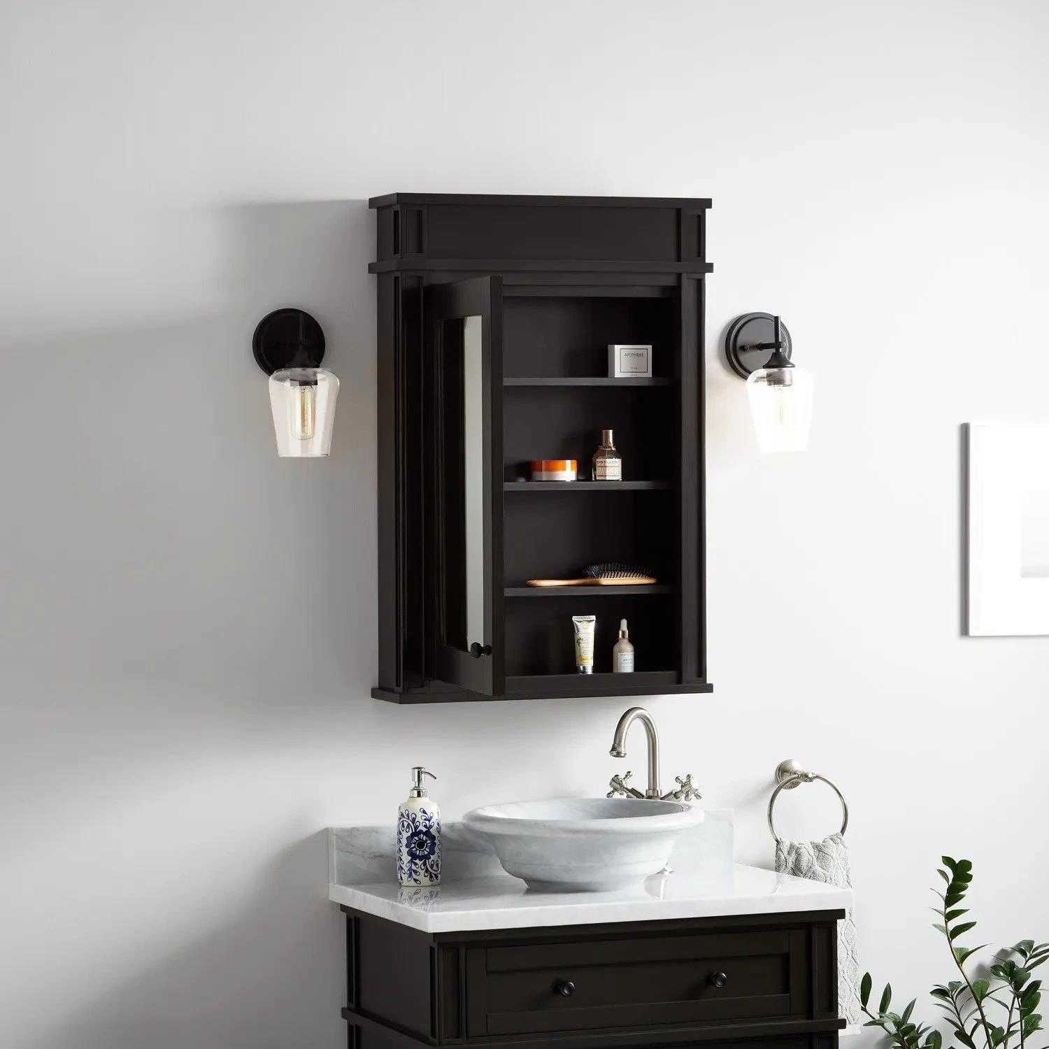 Set in a refined charcoal black finish, the Elmdale Medicine Cabinet is the perfect final detail for your traditional or transitional bath. Behind a mirror, this cabinet reveals a wealth of space for everyday toiletries, including an adjustable shelf. Soft-closing hardware ensures quality and protection.
