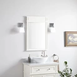 The Elmdale Vanity Mirror is the perfect finishing touch for your traditional or transitional bathroom. Made from sturdy mahogany and finished in white, this piece is sure to brighten your space.
