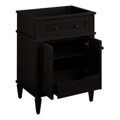 Elevate your compact bathroom or powder room with the 24″ Elmdale Vanity with Undermount Sink in charcoal black. Its timeless design and finish are combined with elegant touches, making it the perfect choice for both traditional and transitional spaces. A set of doors is complete with an adjustable shelf and soft-closing hinges for optimal use and a quality feel. Top off the look with the matching vanity mirror.