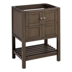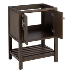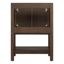 The 24″ Olsen Console Vanity for Undermount Sink is the perfect fit for a half bathroom. Featuring a beautiful design and ash brown finish, this cabinet stylishly complements any decor. A pair of doors are equipped with quiet, soft-close hinges that prevent slamming. Plenty of storage space is offered within the cabinet for everyday necessities, with an open area below to keep folded towels.
