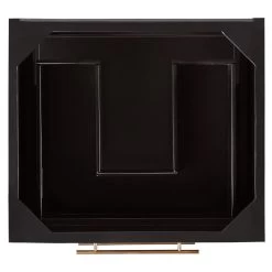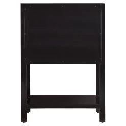 The 24″ Robertson Console Vanity has a rich black finish and antique brass pulls. A great fit for a small bathroom, this product features a U-shaped drawer and lower shelf.