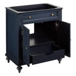 The 30″ Keller Vanity has a beautiful finish that is complemented by antique brass door knobs. Featuring decorative trim and elegant feet, this cabinet brings a sophisticated look to your bathroom. Mahogany construction ensures that the Keller is durable and will last.
