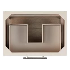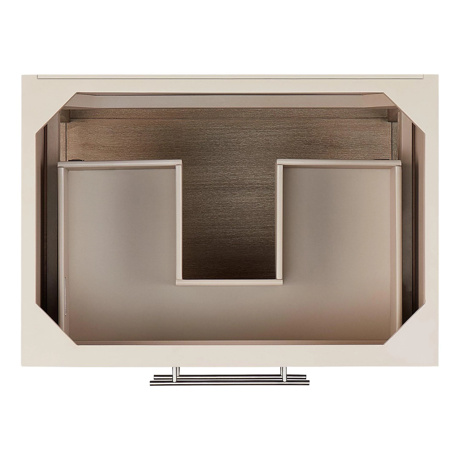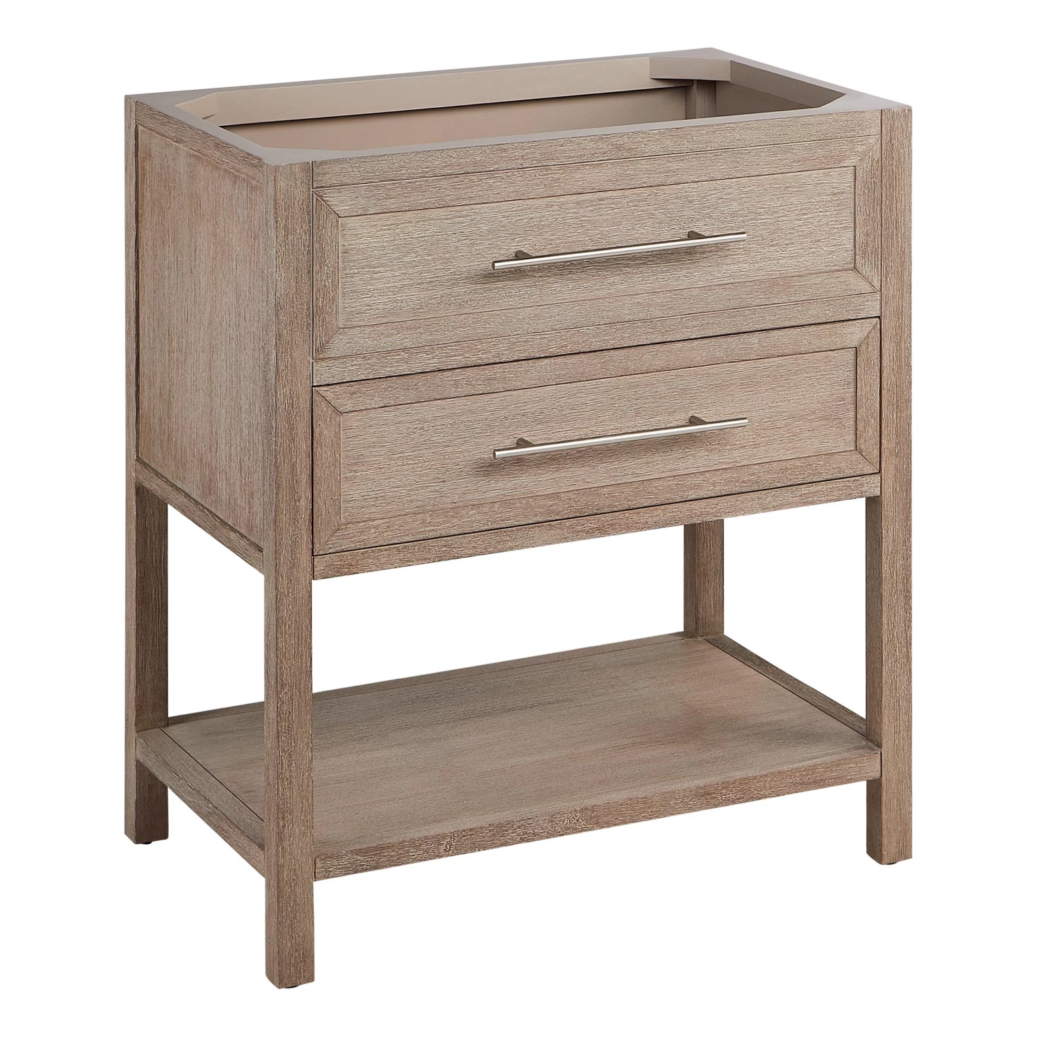 Update your transitional or modern space with the 30″ Robertson Console Vanity Cabinet. A brushed white finish and polished nickel drawer pulls adorn this mahogany build, combining durable design with an elegant look. Featuring a U-shaped drawer and an open shelf below, there’s just enough space for storing and organizing your everyday essentials. Soft-closing slides are included to protect the vanity’s frame while ensuring smooth, quiet use.