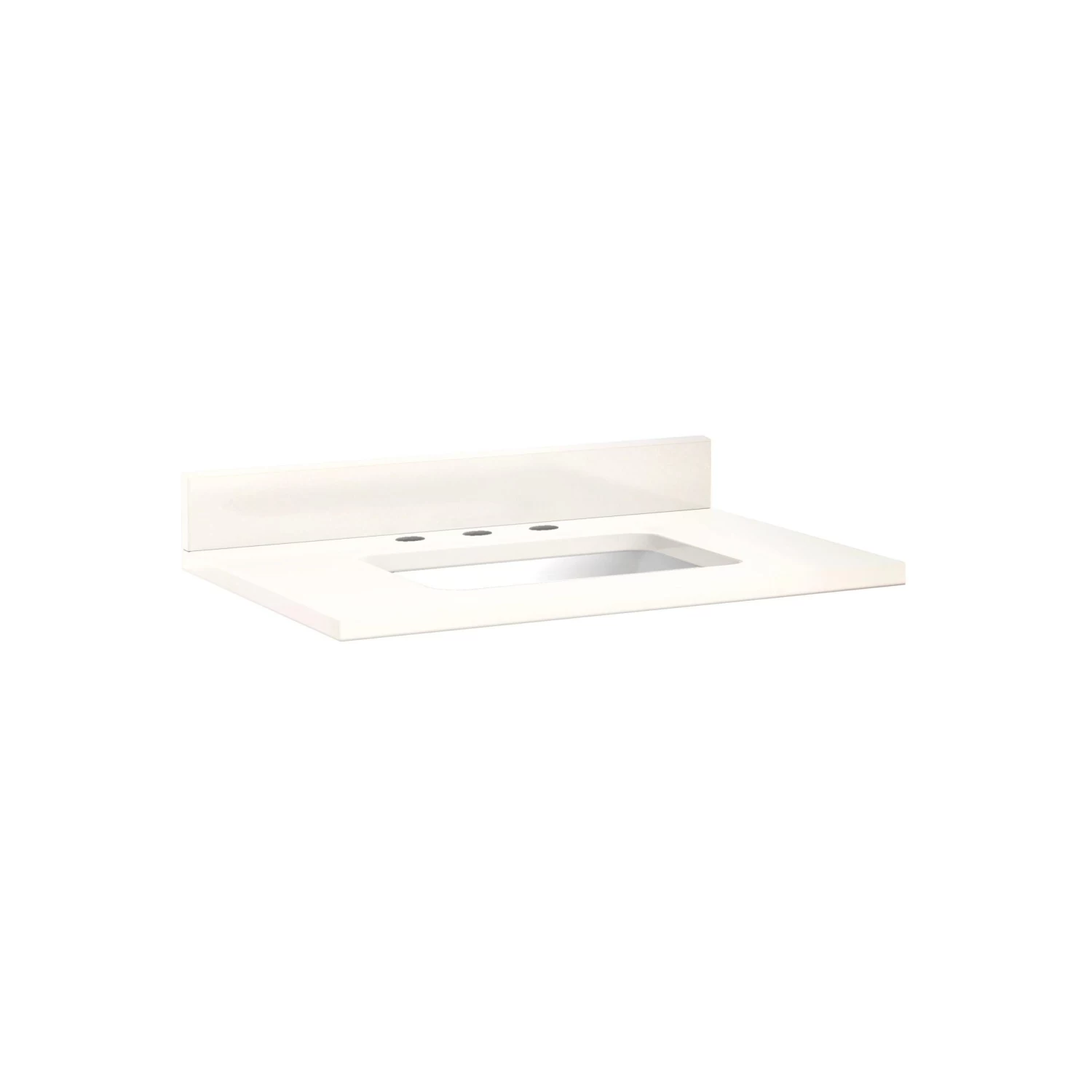This thick quartz vanity countertop comes pre-drilled for a rectangular undermount sink.