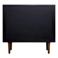 Remindful of mid-century modern furniture styles, the 36″ Bivins Bathroom Vanity displays a two-tone cabinet and tapered dowel legs. This showstopper features java-colored panels surrounded by a black, teak frame, all made of durable wood. A roomy interior containing an adjustable shelf keeps your items neatly tucked away. Each door is equipped with soft-close hinges and opened by a recessed handle cutout. Your choice of 3cm vanity top allows the Bivins to be customized to your style.