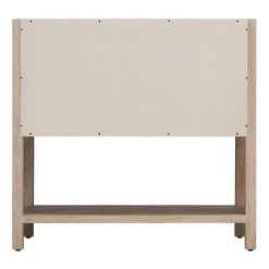 For a refreshing bathroom update, the 36″ Robertson Console Vanity with Rectangular Undermount Sink is a perfect choice. Constructed of mahogany, this durable build is set in brushed white and adorned with polished nickel drawer pulls for an elegant effect. A U-shaped drawer and lower shelf provide a variety of storage options while giving the vanity area an open look. Ensuring seamless use while protecting its frame, the Robertson is complete with soft-closing hardware.