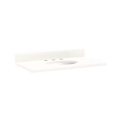 This 37″ x 22″ 3cm Quartz Vanity Top will accommodate an undermount sink. The countertop comes pre-drilled to accommodate your faucet.
