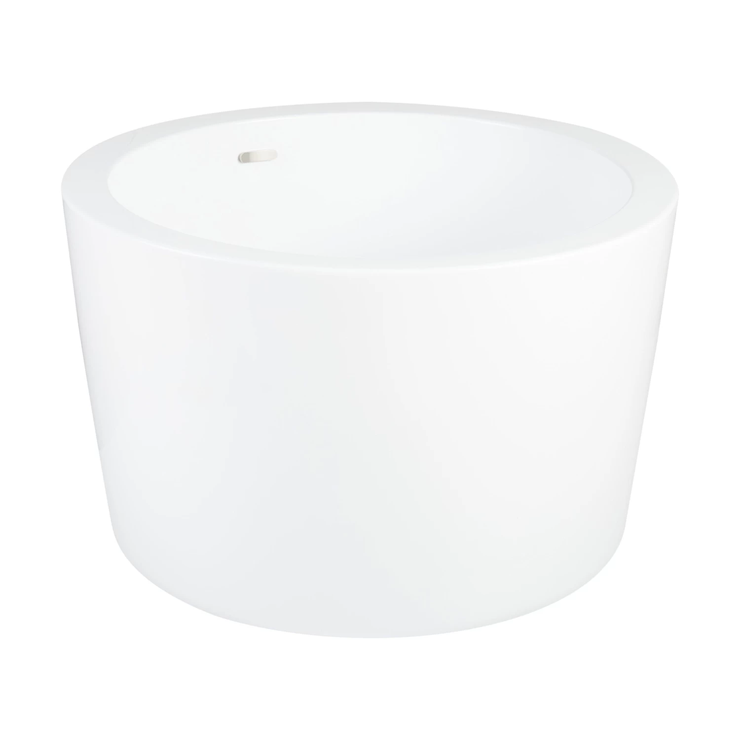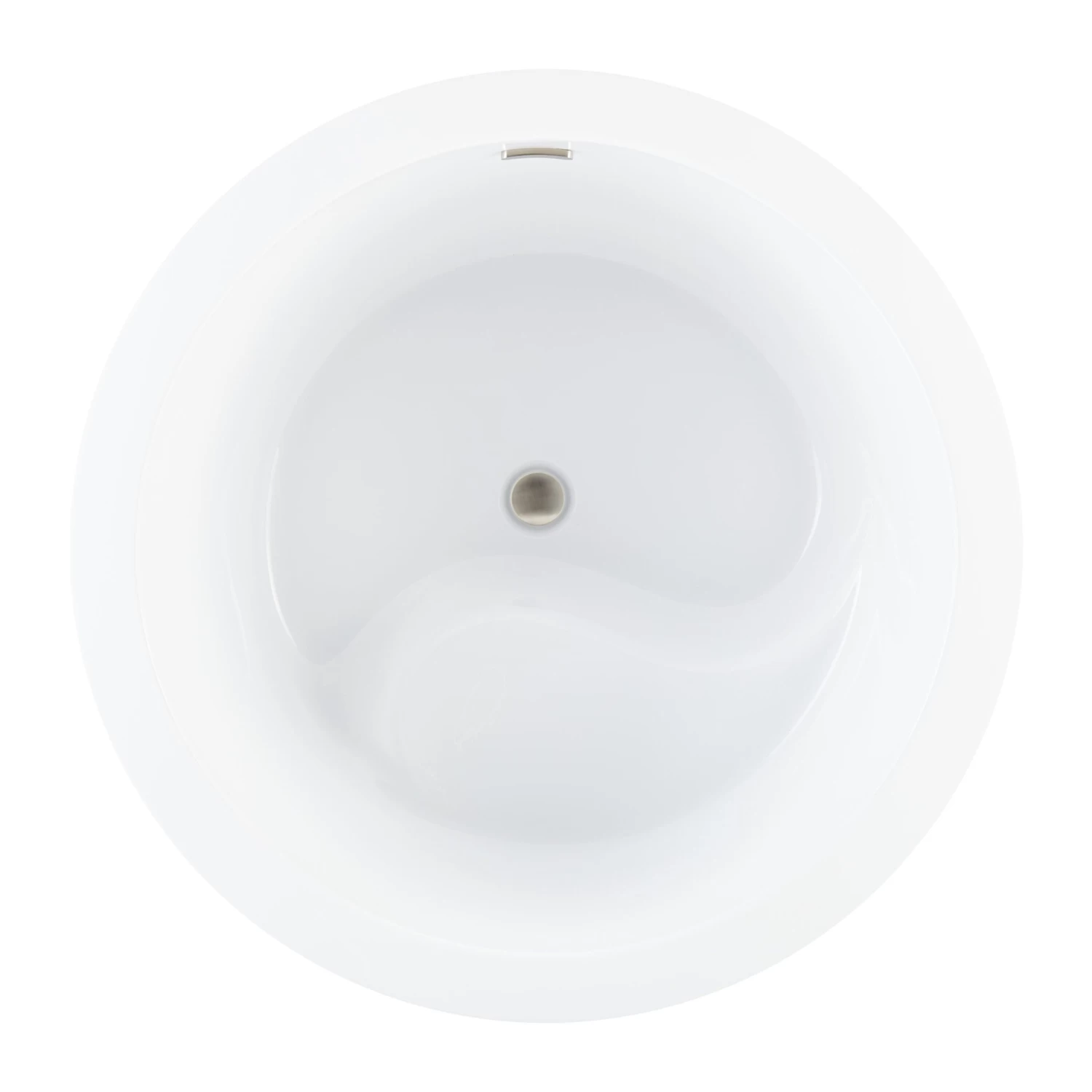 Create a spa-like atmosphere in your bathroom with the round Siglo Japanese Soaking Tub. A relaxing integral seat within the bathtub creates a comfortable and peaceful experience. The drain and overflow system is built within the walls of the tub, leaving no pipes exposed.