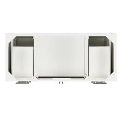 Make a statement in your next bathroom refresh with the 48″ Holmesdale Vanity. Made of mahogany and set in a bright white finish, this stunning centerpiece boasts pyramid-shaped paneling that adds bold dimension wherever it is installed. Equal parts stylish and functional, the Holmesdale houses six soft-closing drawers and a cabinet to keep essentials always within reach. Leveler feet are included for your convenience. Pair with your own vanity top to complete the look.