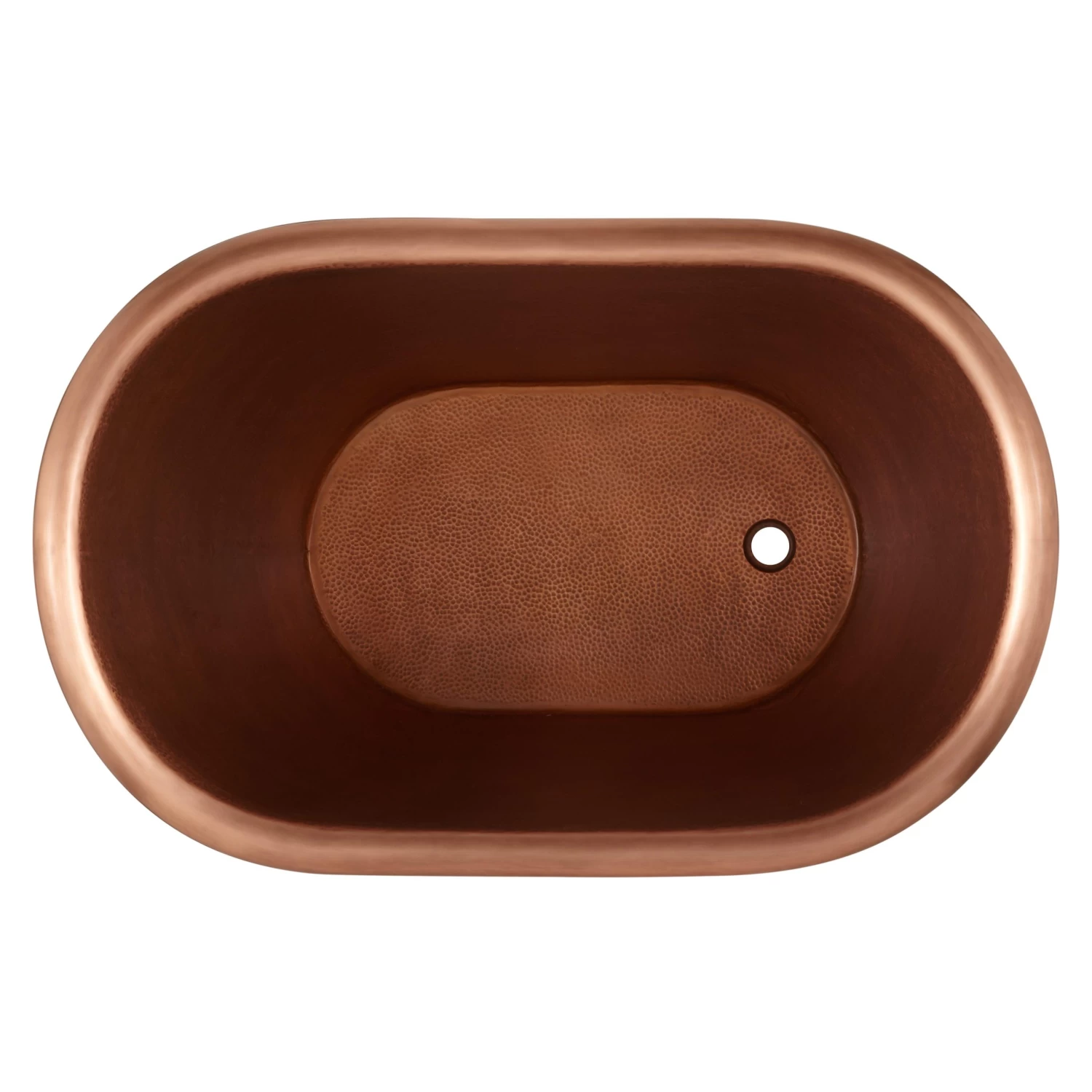 This gorgeous 48″ copper soaking tub fits comfortably in small spaces, making it a unique and convenient piece for any bathroom. The wide and deep interior make it a perfect soaking tub with the distinct look of a clawfoot slipper tub. The copper is hand-hammered to form a pleasant surface texture that complements the Antique Copper finish beautifully.