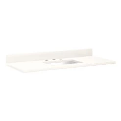 This thick quartz vanity countertop comes pre-drilled for a rectangular undermount sink.