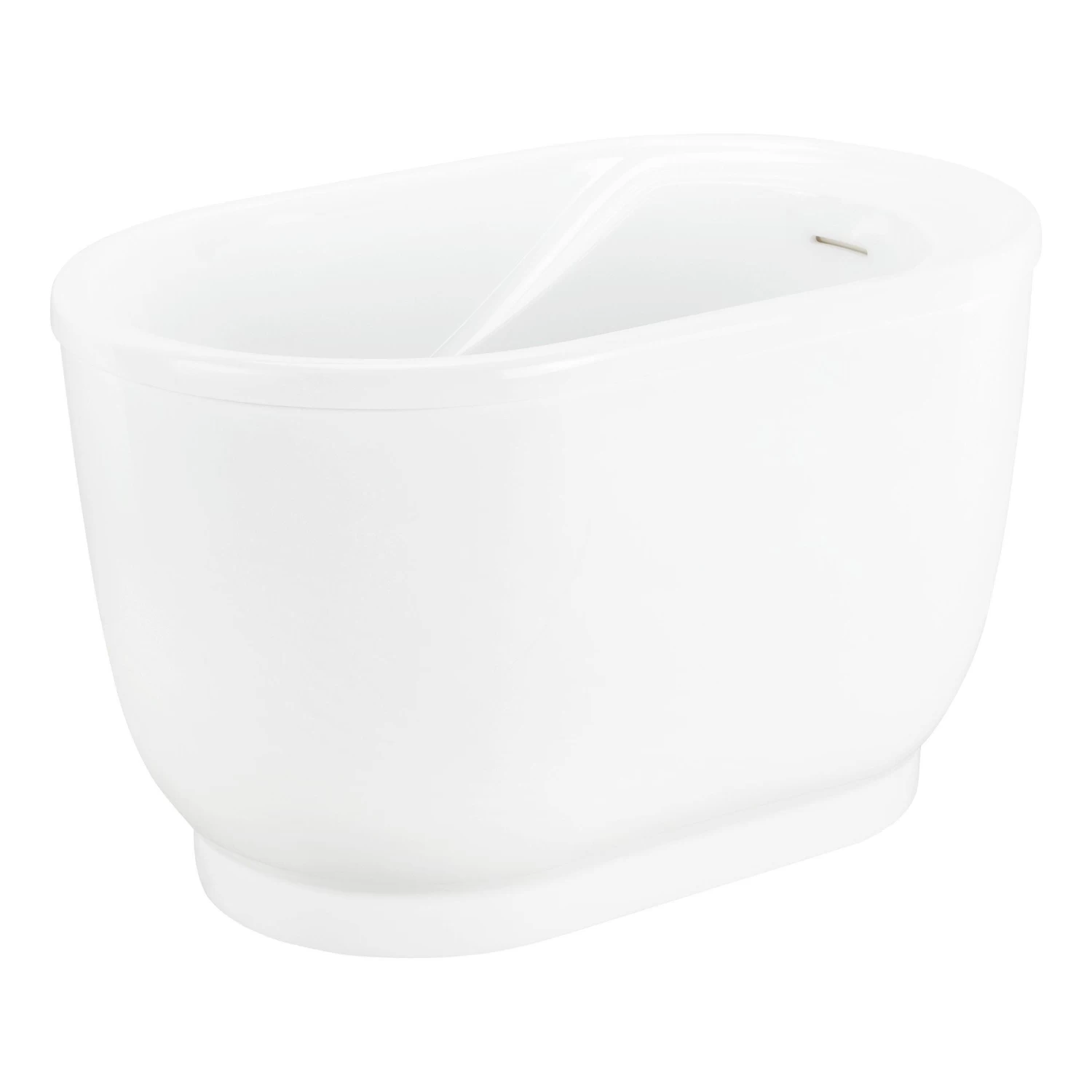 The 51″ Pelion Acrylic Freestanding Tub is compactly designed to fit in a smaller bathroom, yet deep enough for soaking. A pleasing oval shape and curved sides give this tub a charming silhouette.