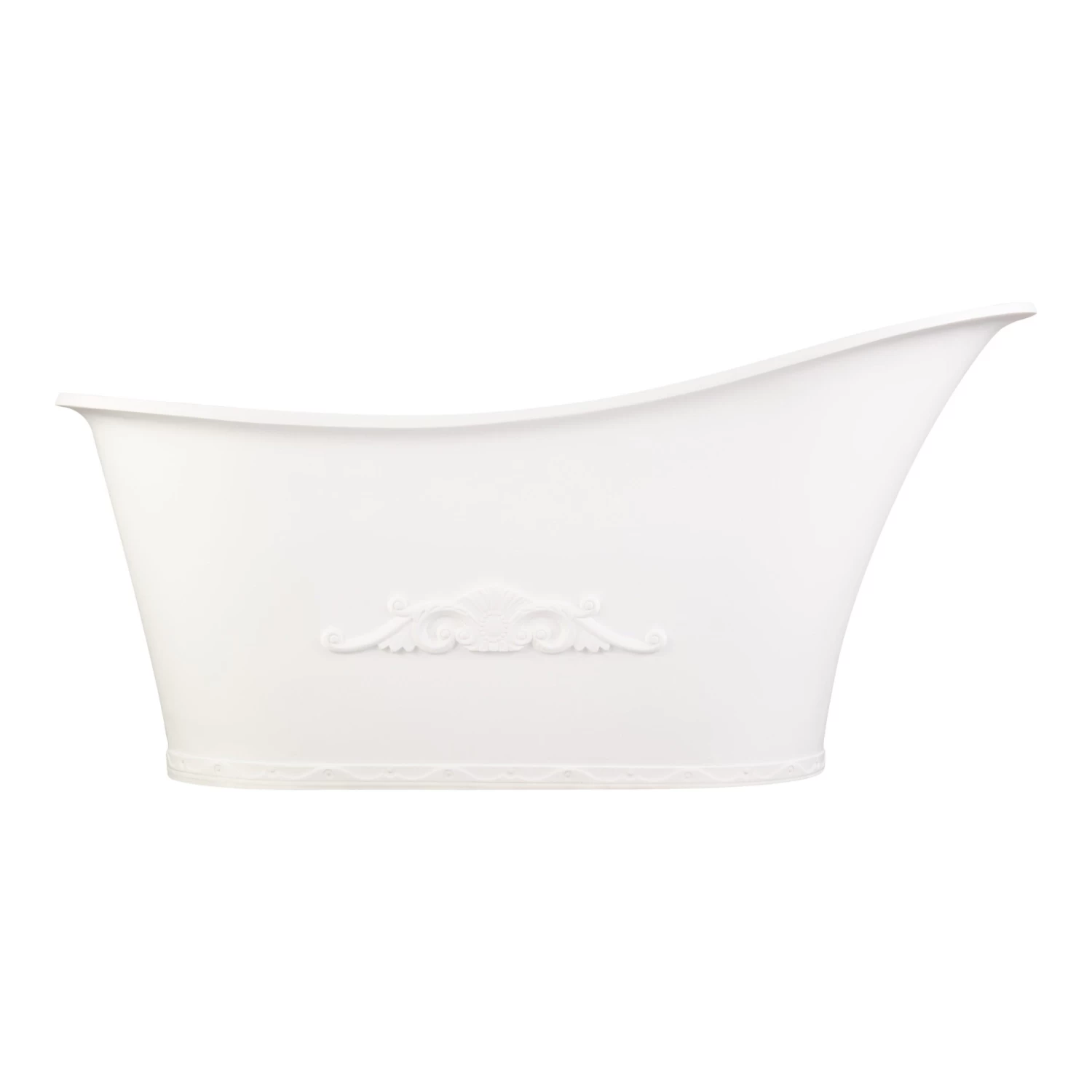 Bring a feminine flair to your master bath with the elegant Sasha Resin Freestanding Tub. A decorative design is molded on the side and around the base of this outstanding tub, which flaunts a romantic slipper shape.