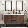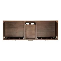 A russet brown finish over solid wood and wood veneer construction makes the 60″ Frey Double Vanity for Rectangular Undermount Sinks a standout in any master bath. Store all your bath items in its twin double-doors and three middle drawers, all with soft-close dampers for uncompromising functionality. Herringbone detail adds a decorative touch to the door panels, while antique gold accents add a glint of flair. The slim legs feature levelers for uneven flooring.