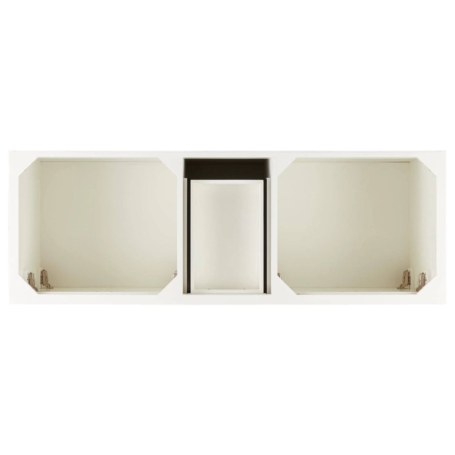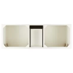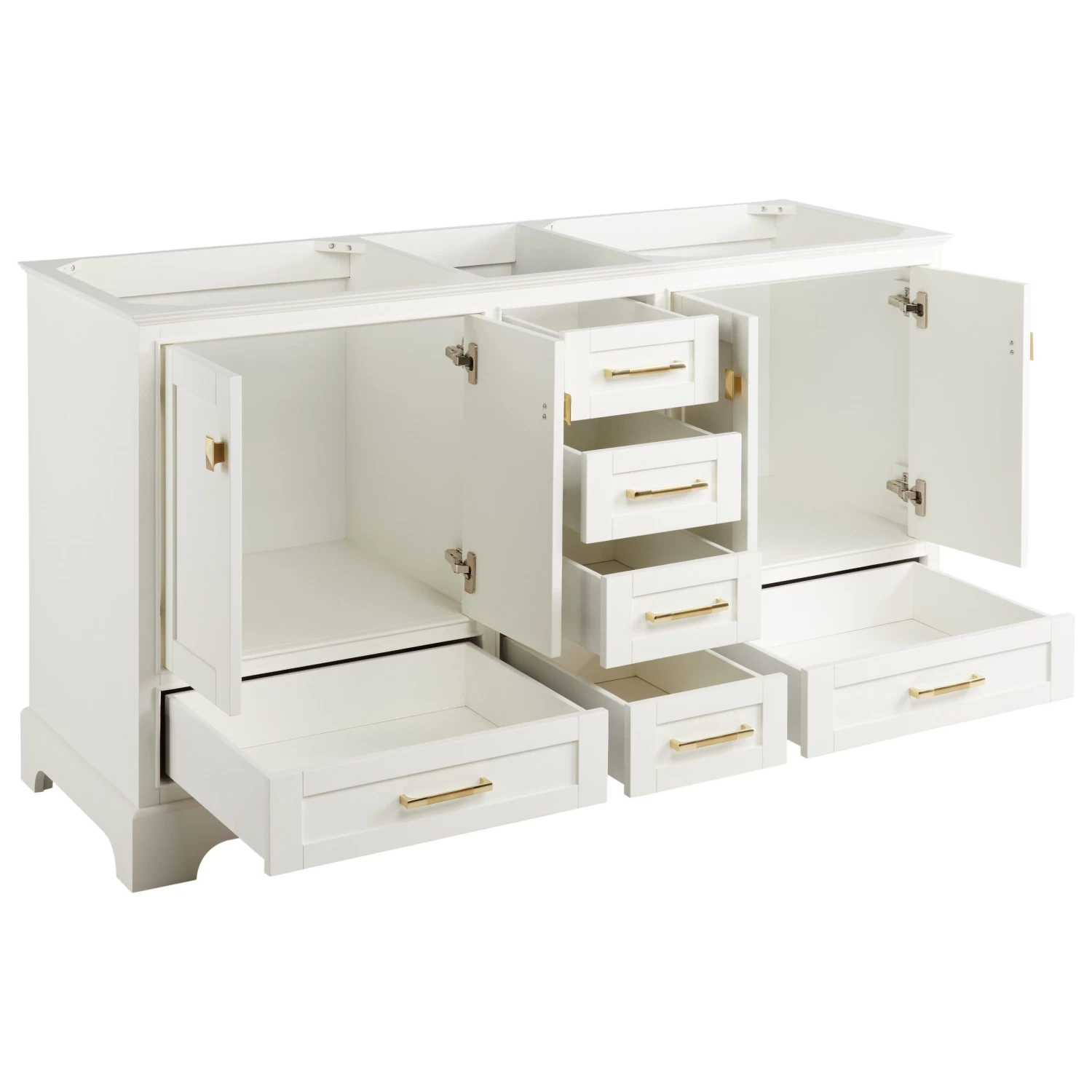 Offering plenty of options for storing your items, the 60″ Quen Double Vanity will keep your bathroom organized. A pair of doors are positioned beneath each sink to provide a space for larger accessories. Underneath each compartment is a drawer that spans the length of both doors. Additionally, stacked drawers line the middle of the vanity to provide easy access to shared toiletries. Available in a soft white finish, this centerpiece will brighten up any space, from traditional to modern. Satin brass hardware elegantly contrasts the Quen’s premium wood build. For durable everyday use, each entry point is equipped with soft-close hinges or slides. To achieve a cohesive look, add the matching vanity mirror.