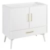 Give your bathroom an ultra-functional update with the 60″ Quen Double Vanity. Each sink area features a cabinet with a bottom drawer, while four drawers line the middle of the vanity, making storage flexible with your specific needs. For smooth and quiet everyday use, all entry points include soft-closing hinges and slides. A driftwood brown finish highlights the wood build, complete with satin black hardware for a warm effect that complements spaces of all styles. To complete the look, add on the matching vanity mirror.