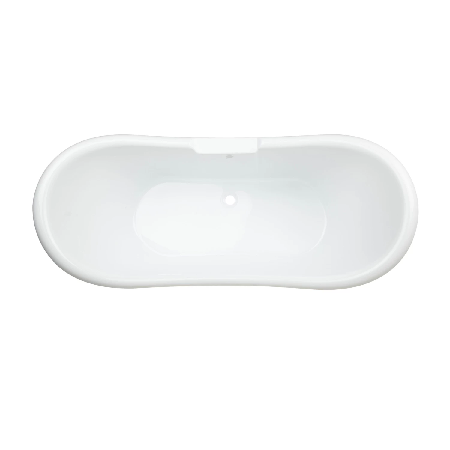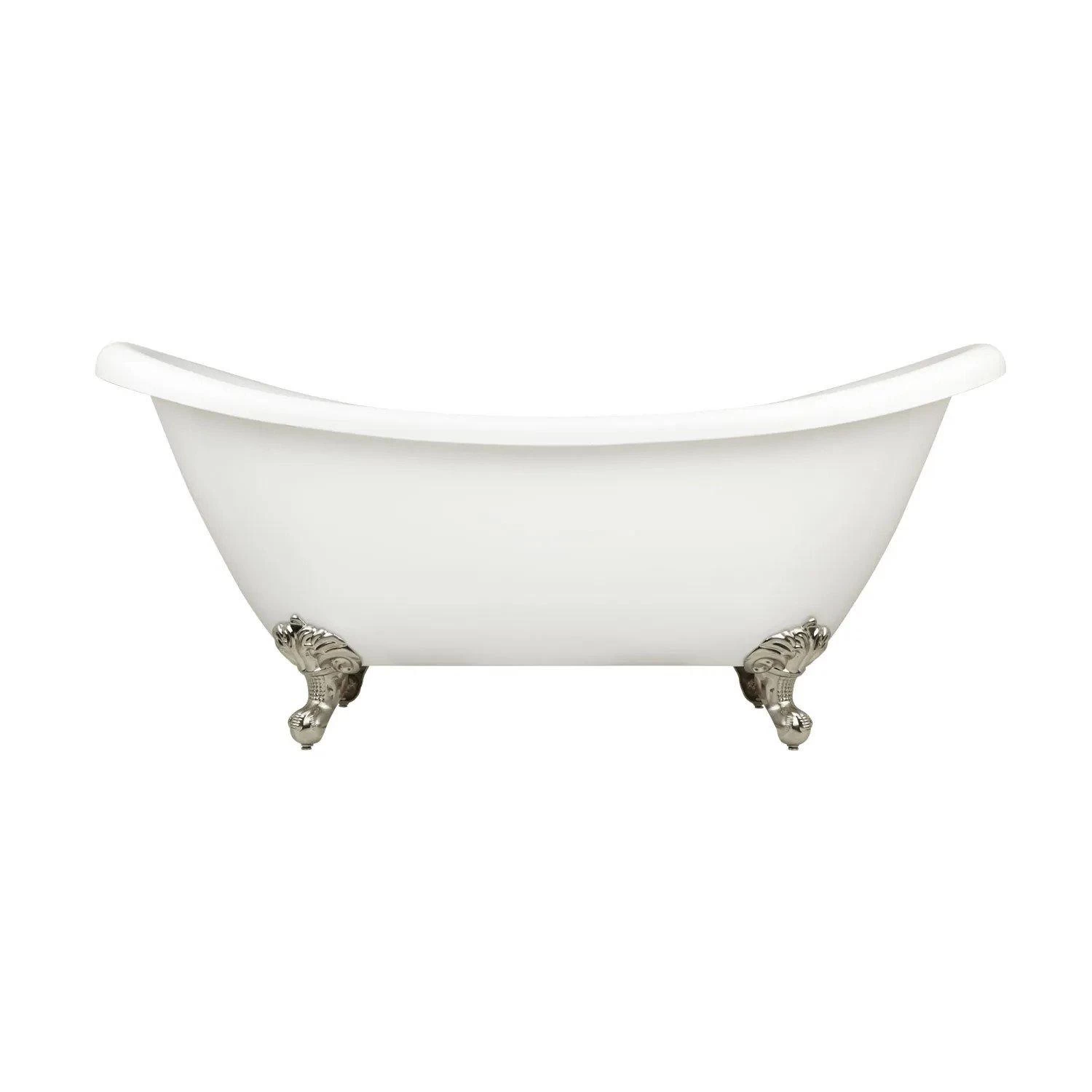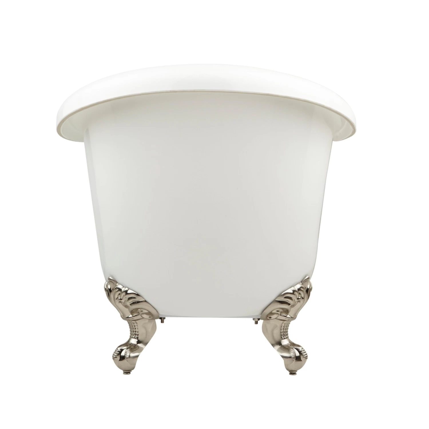 Add a regal aspect to your master bath with the 63″ Rosalind Acrylic Clawfoot Tub, which rests majestically on imperial feet. This tub features a graceful, double-ended design that lets you lean back at either end. Crafted of cast aluminum, the elaborate feet on this tub are adjustable to accommodate uneven flooring.