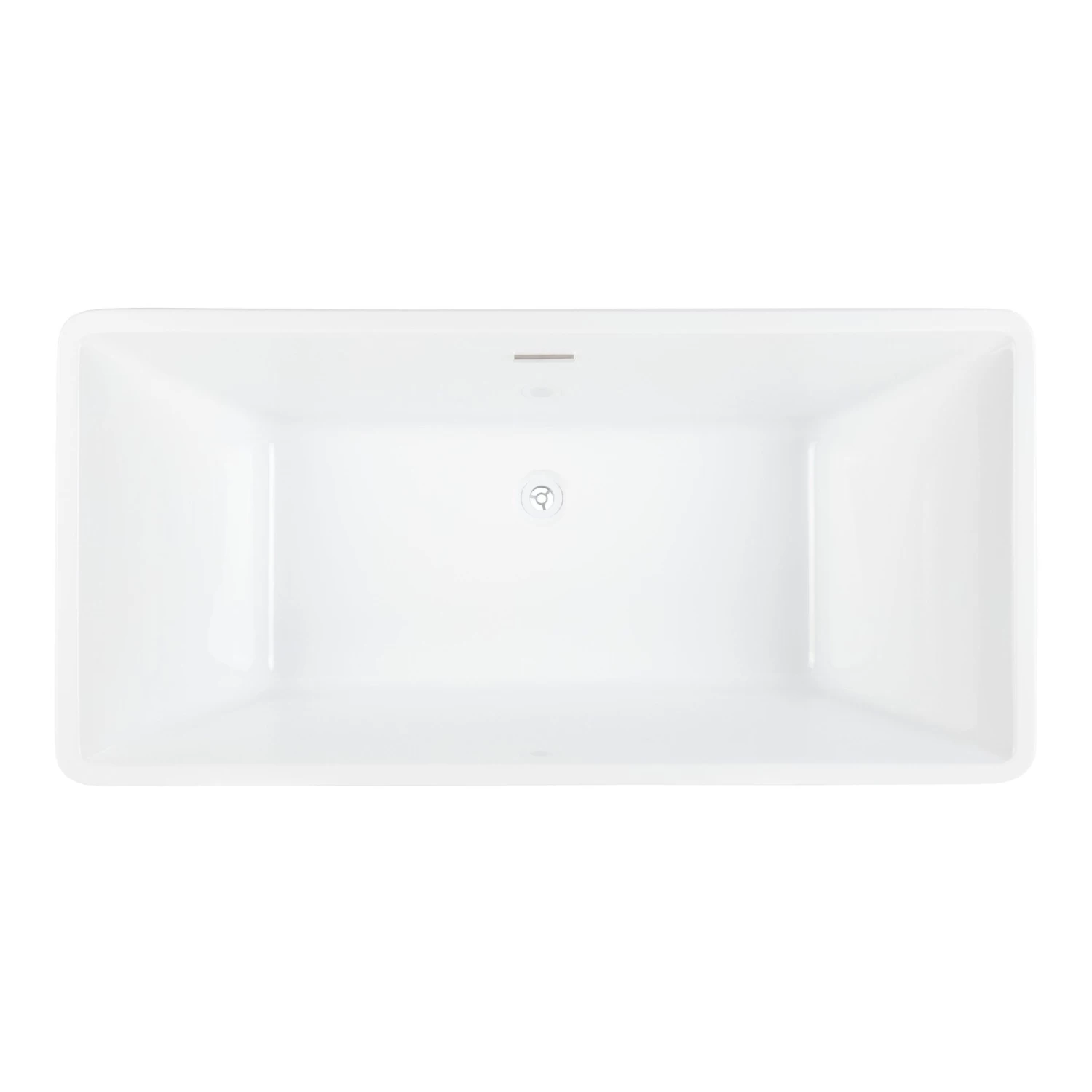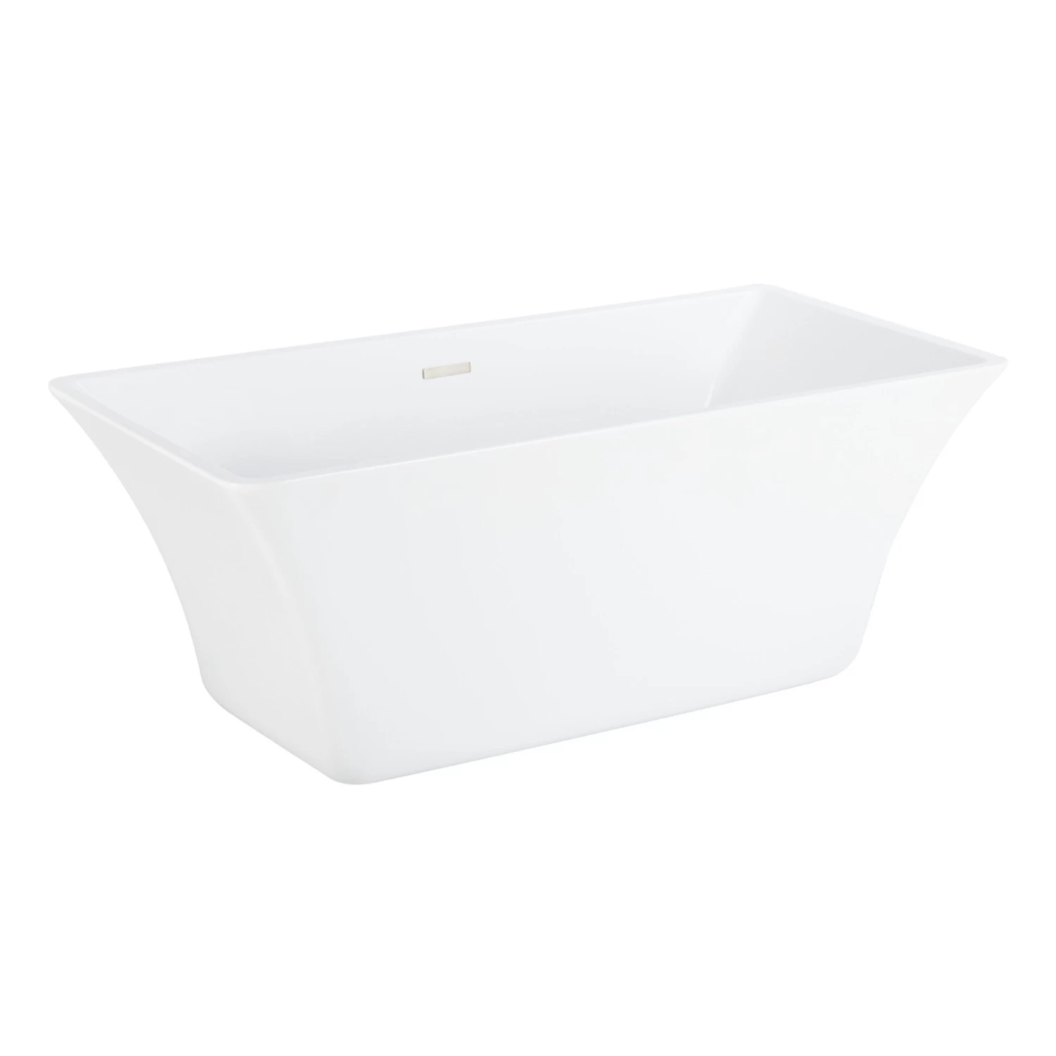The Draque Acrylic Freestanding Tub features a minimalistic, but striking, design. This eye-catching bathtub pairs easily with a stylish faucet and is the perfect piece to place in your master bath. The drain and overflow system is built within the walls, leaving no pipes exposed.