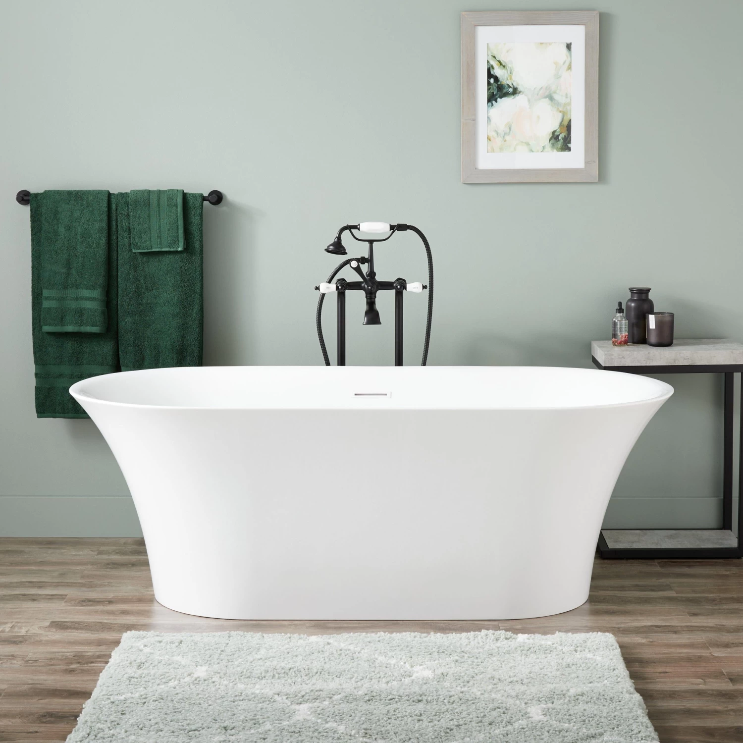 The Giosa Acrylic Freestanding Tub features a flared, oval shape with minimalistic appeal. This striking bathtub pairs well with a stylish faucet and is the perfect centerpiece for your master bath. Made of durable, lightweight acrylic, its surface is low maintenance and easy to keep clean. Completing its thoughtful, streamlined design, the drain and overflow system is built within the walls, leaving no pipes exposed.
