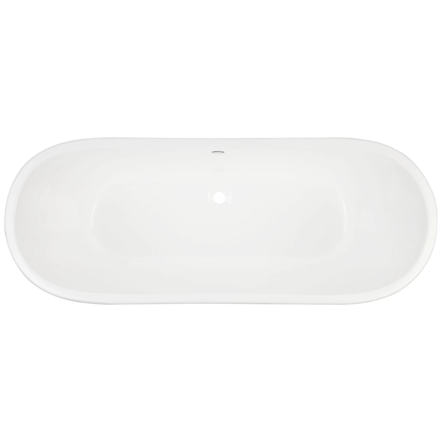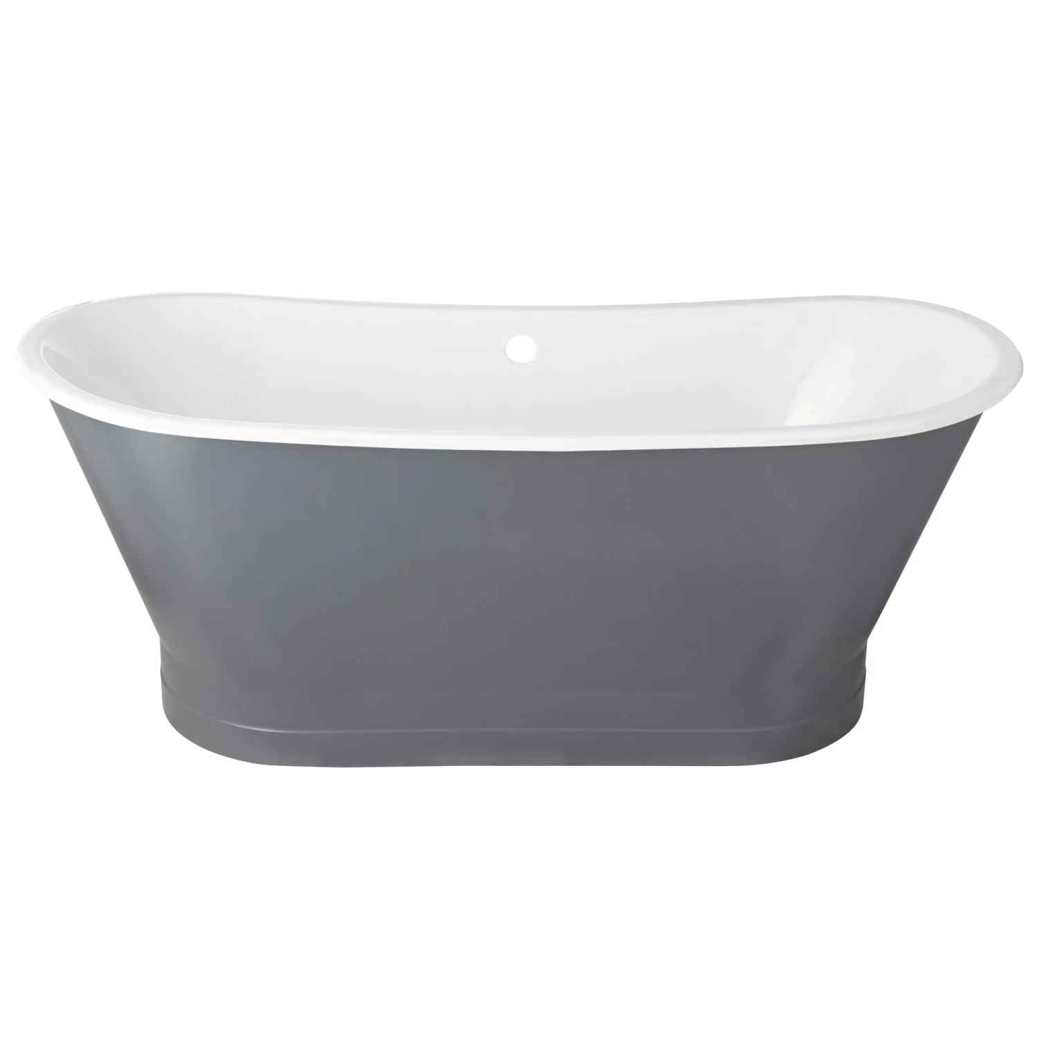 The 67″ Kateryn Bateau Cast Iron Skirted Tub combines vintage style with modern luxury. This spacious tub allows you to recline at either end. The Dark Gray color brings warmth and sophistication to your bathroom, and complements an elegant tub faucet.