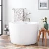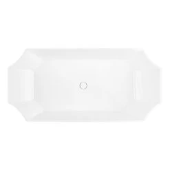 The 67″ Rossetti Solid Surface Freestanding Tub perfectly captures the look of Victorian-era design while embodying modern features. Its rectangular shape displays scalloped corners remindful of classic styles, flared towards the top to create a bath that’s both elegant and practical. Its durable resin construction boasts a glossy finish that is low maintenance and easy to clean, resisting stains, scratches, and chips. The spacious interior contains sloped walls for comfortable lounging in either direction as well as a centrally located, non-intrusive drain. The overflow system is built into the walls of the tub, leaving no pipes exposed for a clean look.