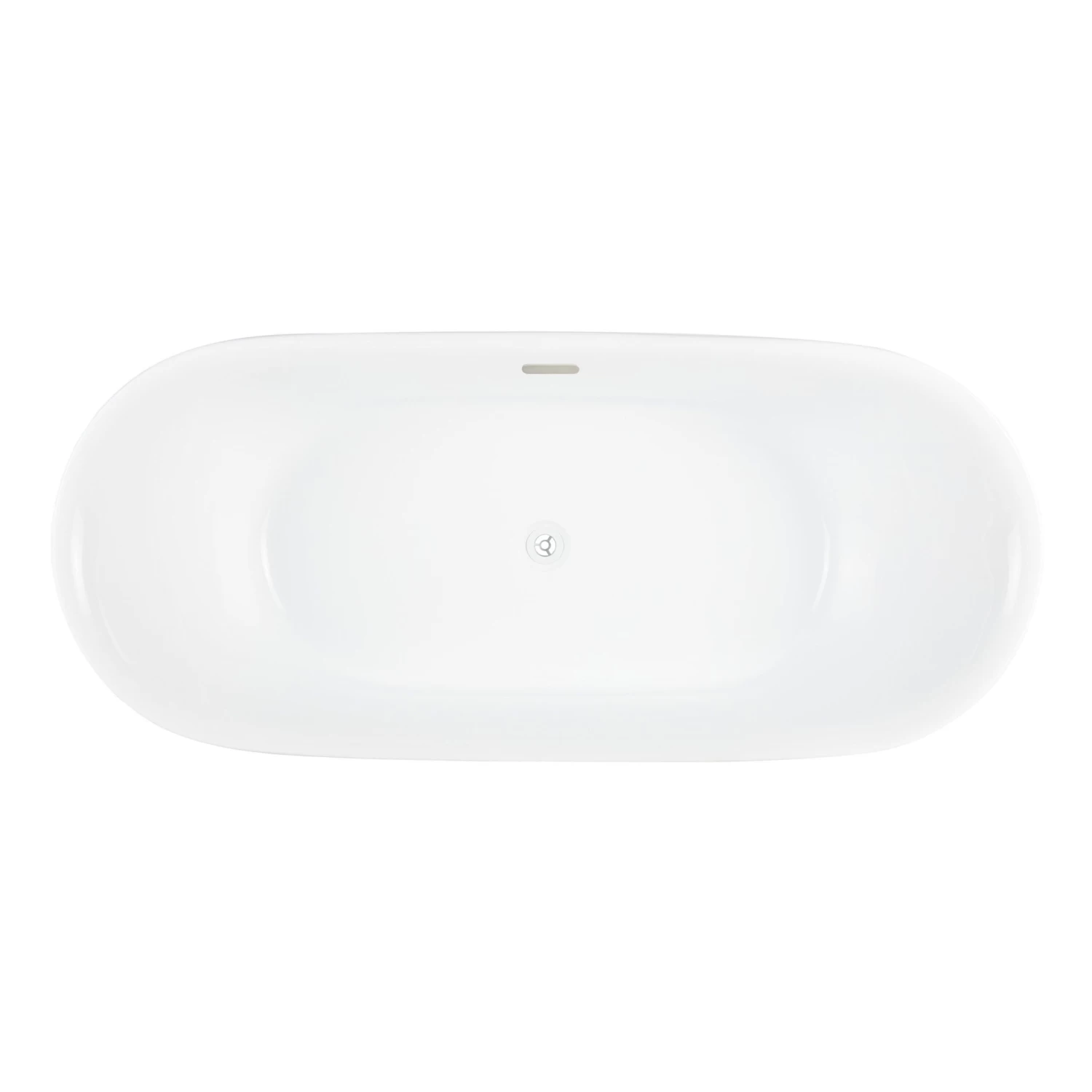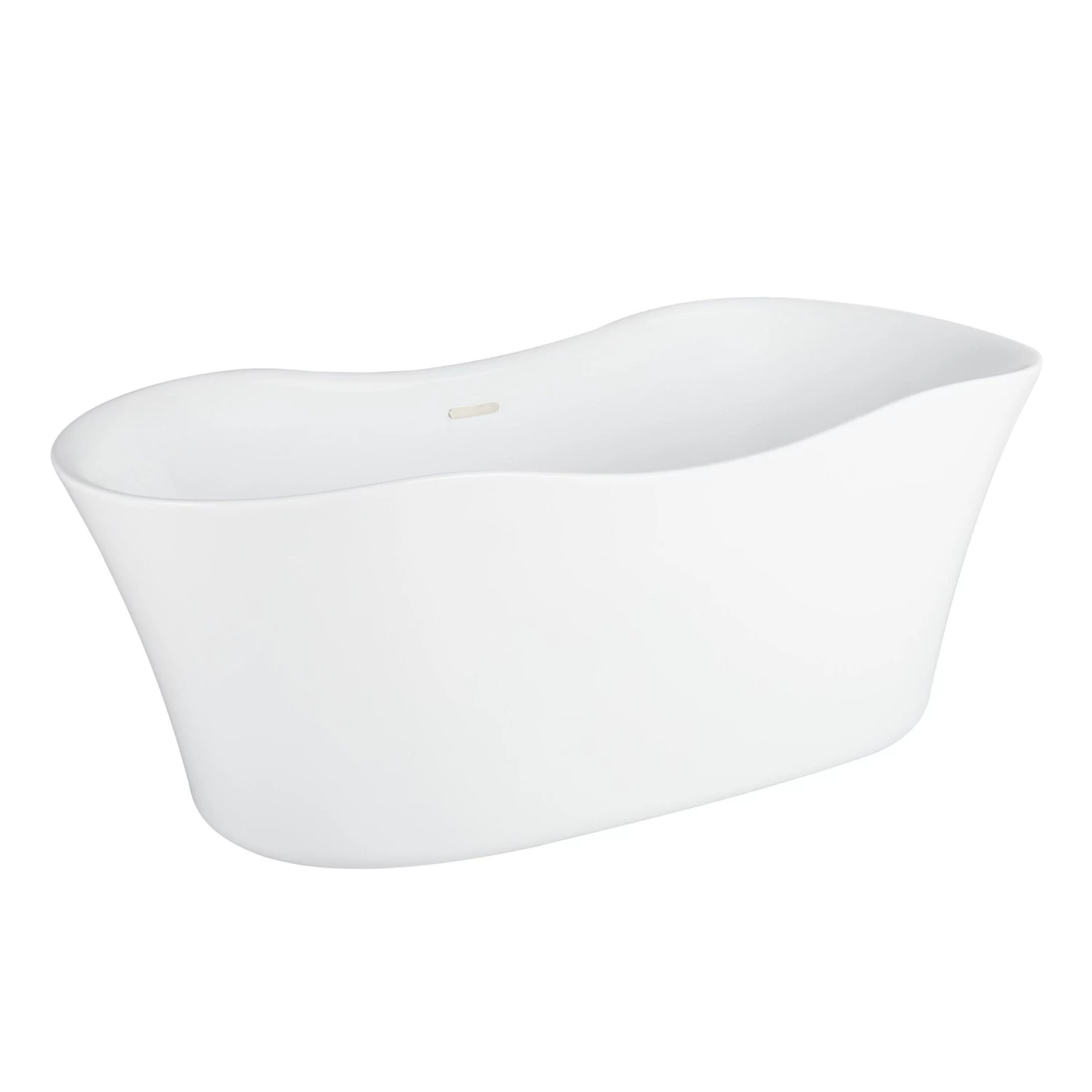Its wavy upper rim brings a sense of movement to the Stower Freestanding Tub. A roomy interior contains sloped ends for relaxed lounging in either direction, and a non-intrusive center drain placement. Formed from durable acrylic, removing dirt and debris from this low-maintenance bathtub is made simple by using non-abrasive cleaners. Completing its smooth look, an overflow channel is integrated into the tub walls to efficiently carry water to the piping underneath.