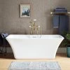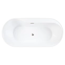 A versatile shape allows the Ashington Freestanding Acrylic Tub to match any style of bathroom. The rim contains a wide section which conveniently serves as a shelf for soap and accessory storage. An integral drain and overflow system are built into the walls, adding to its clean appeal.
