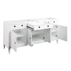The 72″ Hawkins Double Vanity is suitable for a larger bathroom. An abundance of drawer and cabinet space makes this product the perfect storage solution for your space. Featuring a white finish, the Hawkins brings timeless style into your bathroom.