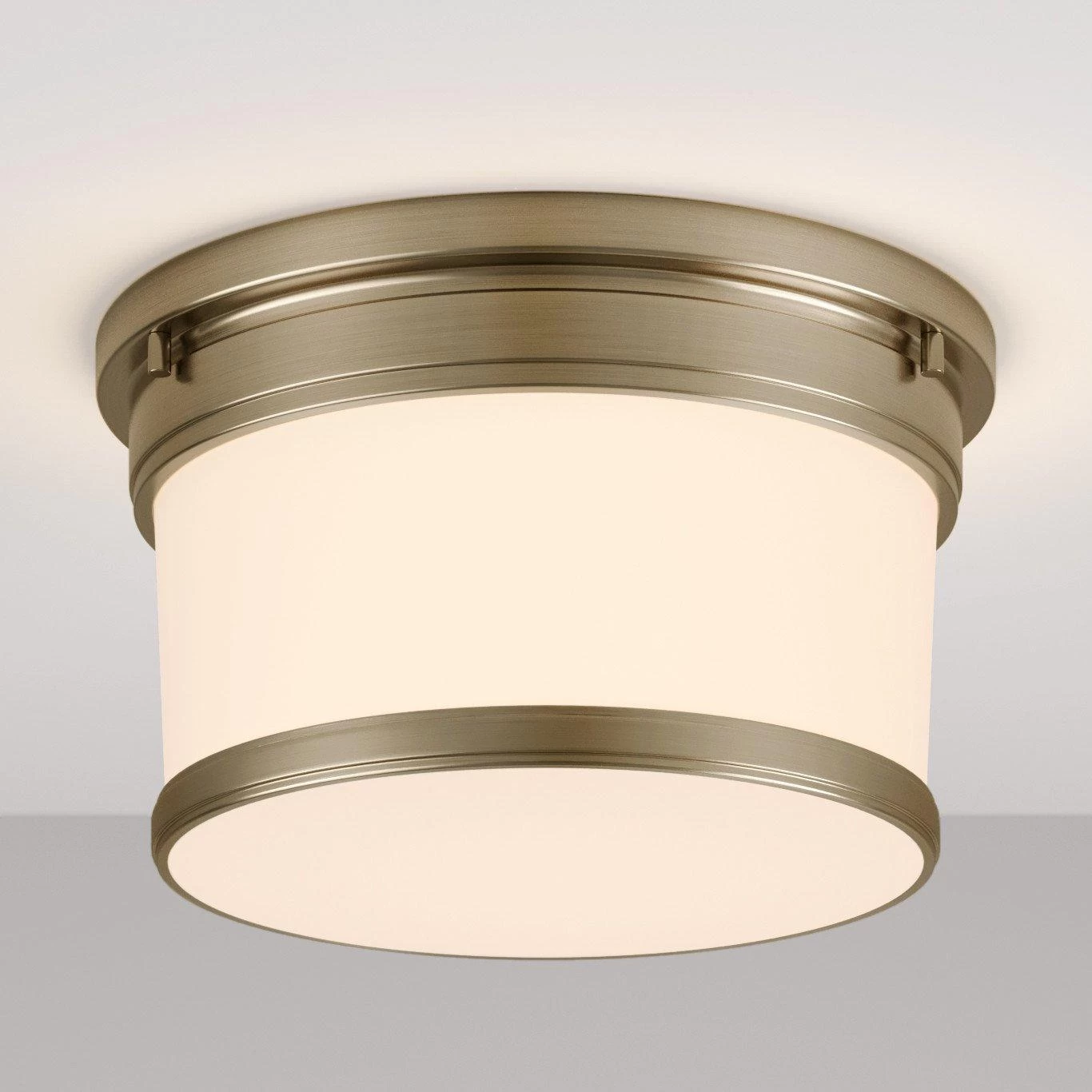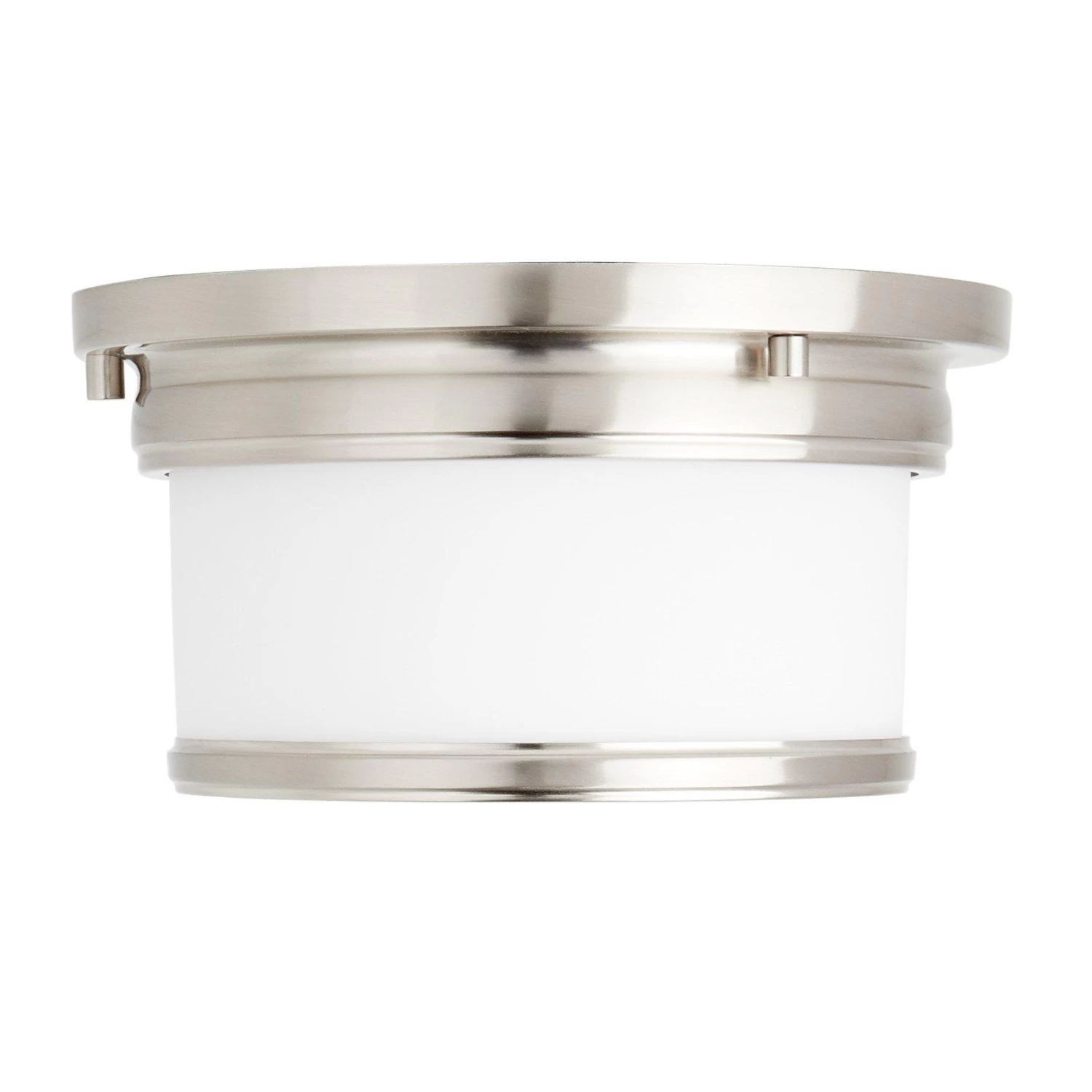 Simple-yet-effective styling makes the Summerlake Flush-Mount Ceiling Light ideal for a timeless home. This product features a single bulb that shines brightly within the glass, drum-style shade. Its frosted etching helps produce a soft yet effective glow, complemented by metal rings to enhance its appeal. Mounting hardware is included.
