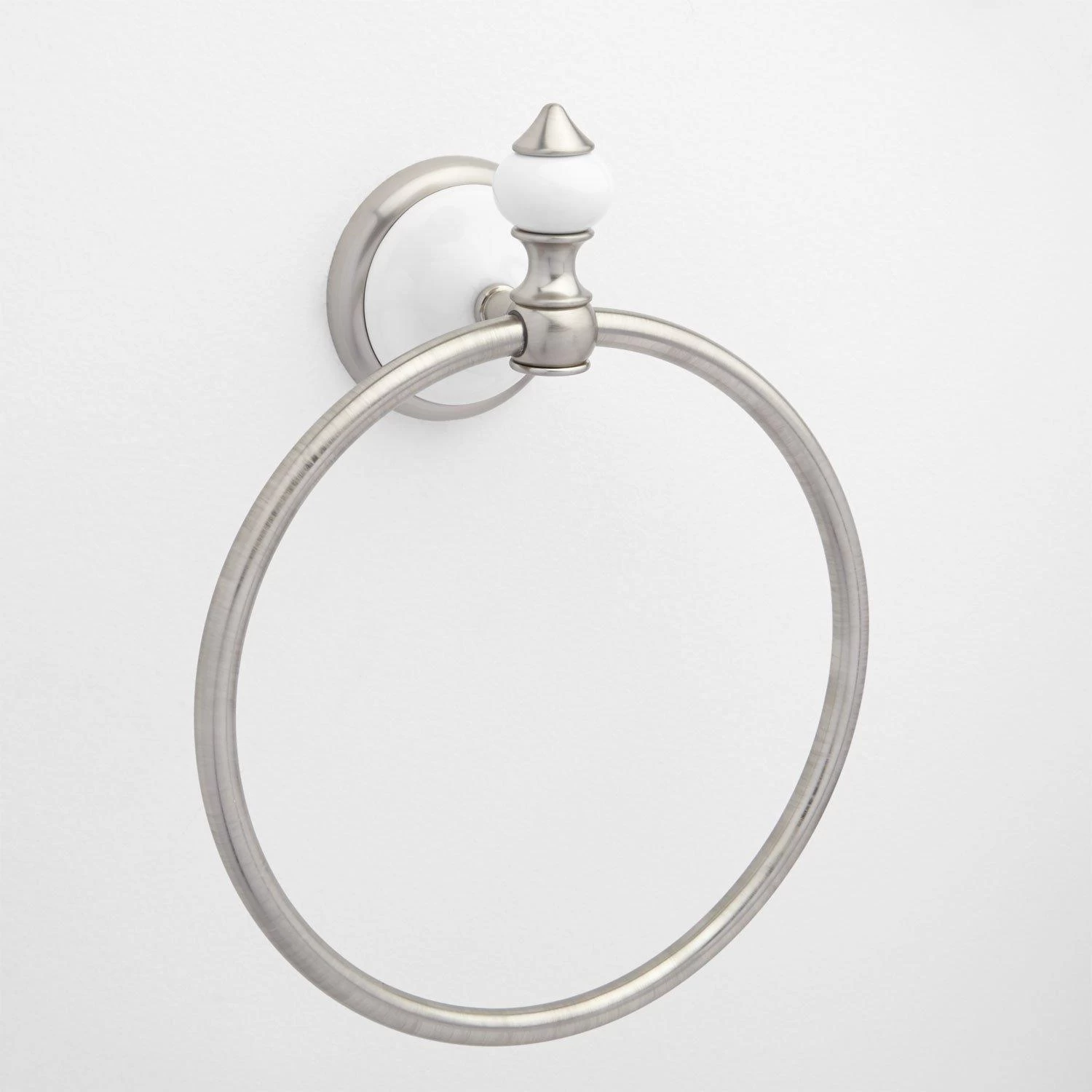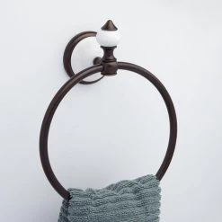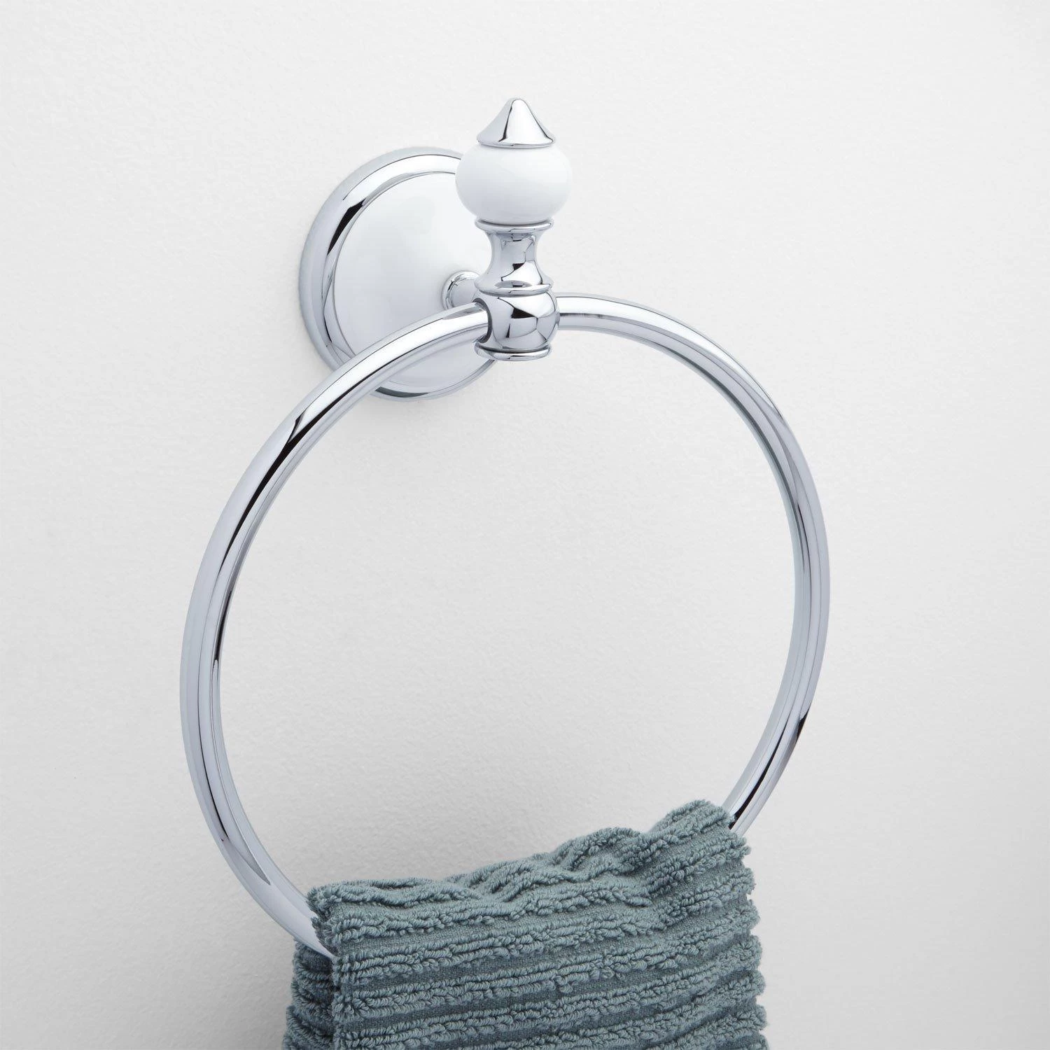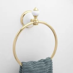 Crafted from brass, the Adelaide Towel Ring features a matching finial and mounting bracket. Beautiful and easy to install, this piece is a wonderful addition to your bathroom.