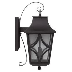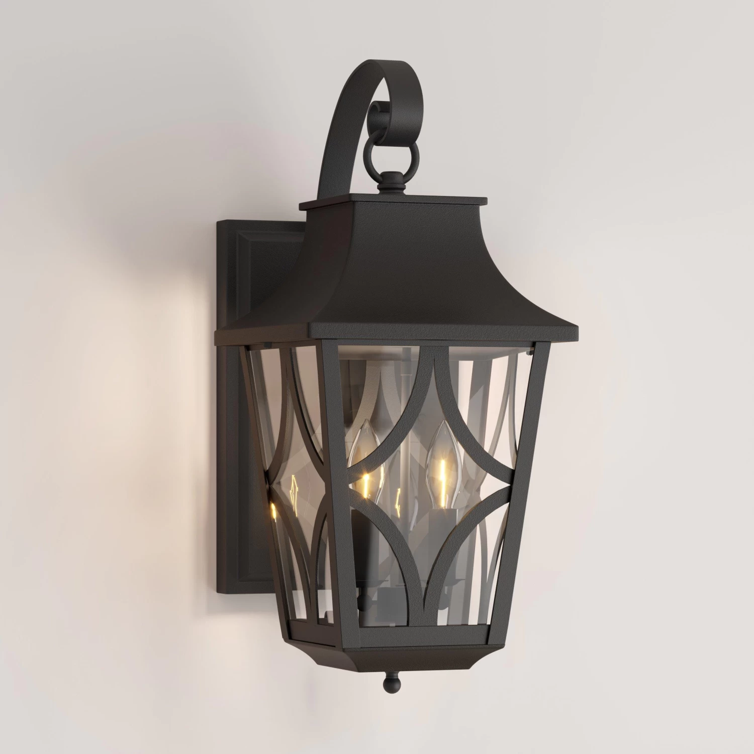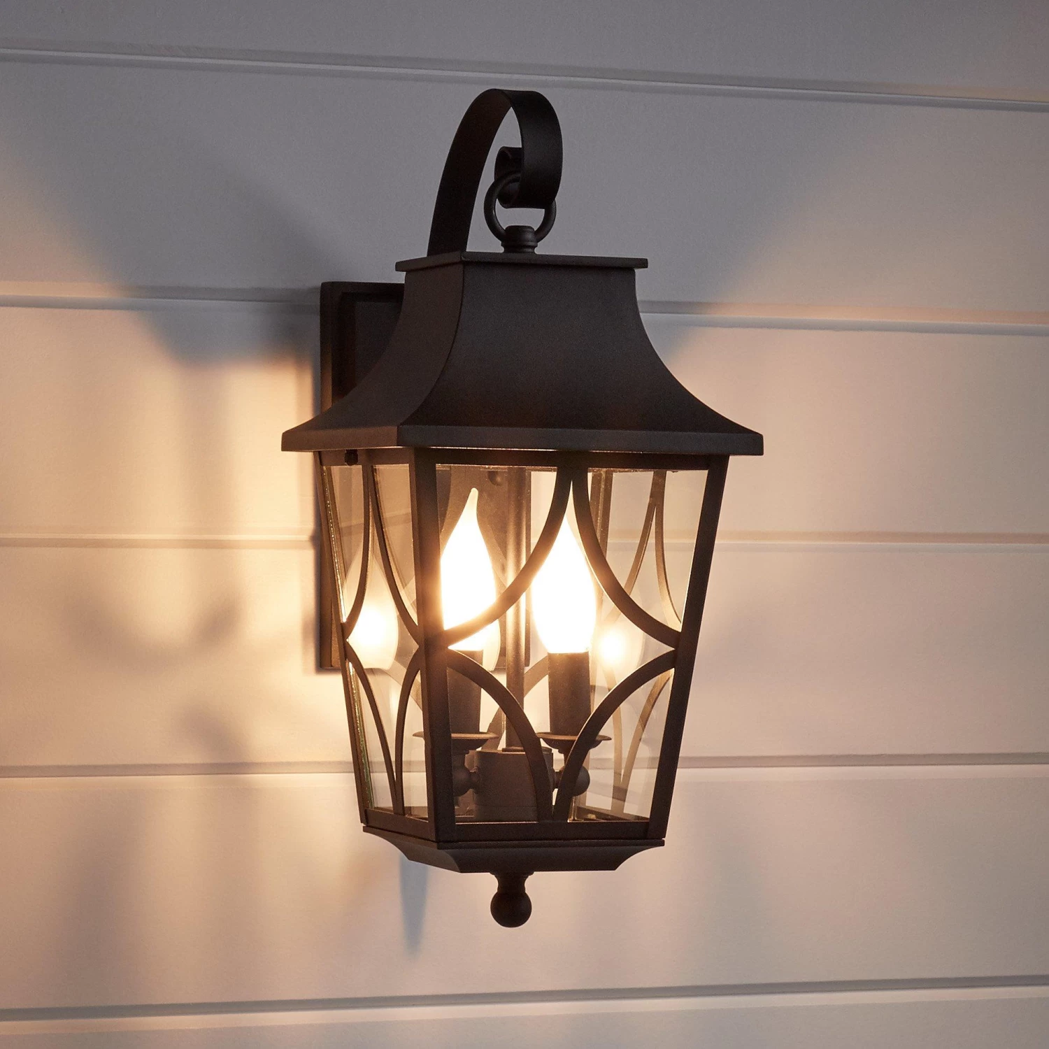 The Altimeter Candelabra Outdoor Wall Sconce has a trio of lights to keep your entrance nice and bright. Elegant metal detailing across the clear glass creates a classic look that enhances the curb appeal of your home. Made of cast aluminum and covered with a premium finish, this post lantern will hold up to the elements.