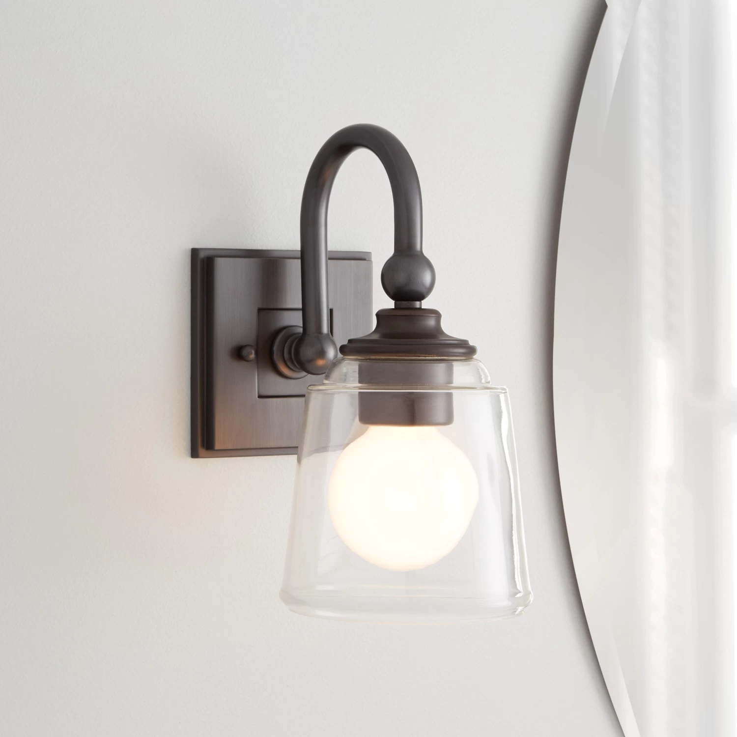The Antonio Sconce offers stylish lighting in your vanity area. From the arched support arm to the finial detailing that holds the flared glass, this product is the perfect fixture to update your space. Product can be installed shining towards the floor or ceiling.