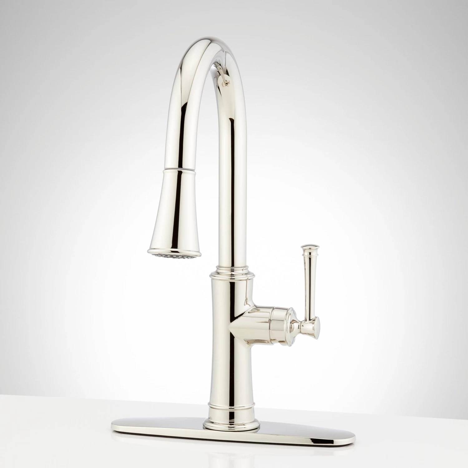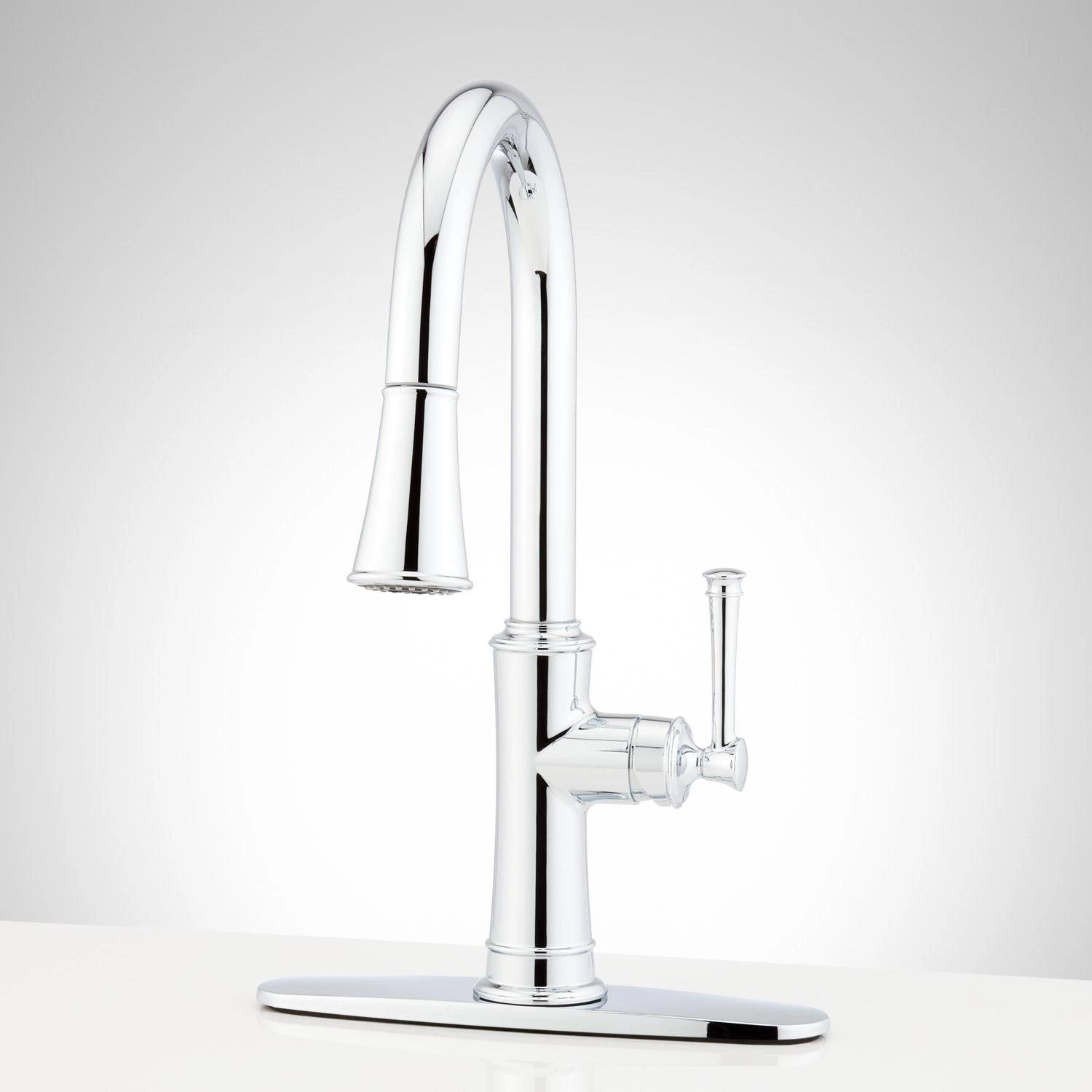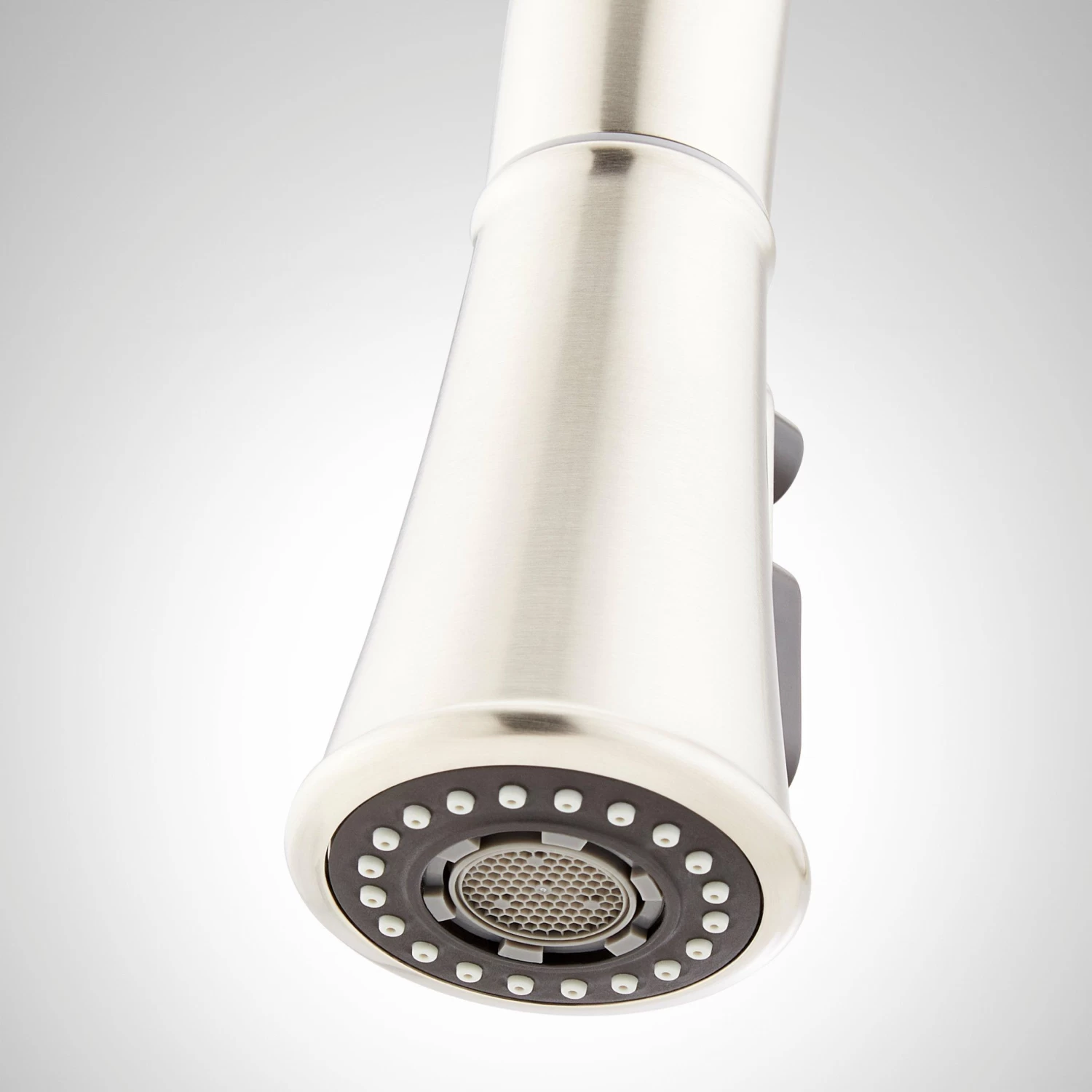 Add style and convenience to your kitchen with the Beasley Single-Hole Kitchen Faucet, featuring a dual-action, pull-down spray that easily switches from an aerated stream to a powerful rinse. A corrosion-resistant finish covers this fixture to promise lasting beauty and reliability. Includes a matching deck plate that can be used to hide unused mounting holes in your sink or countertop.