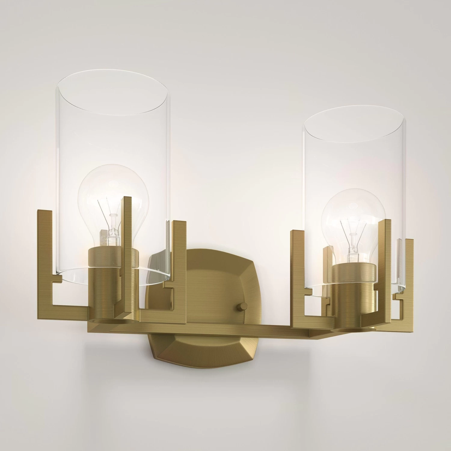 The Bercken 2-Light Vanity Light adds a classic finishing touch to any bathroom upgrade. With the light direction facing upward, its design stylishly frames and accentuates your vanity. Clear, glass cylinder-shaped shades allow for maximum illumination. Additionally, steel construction means that this fixture is built to last.