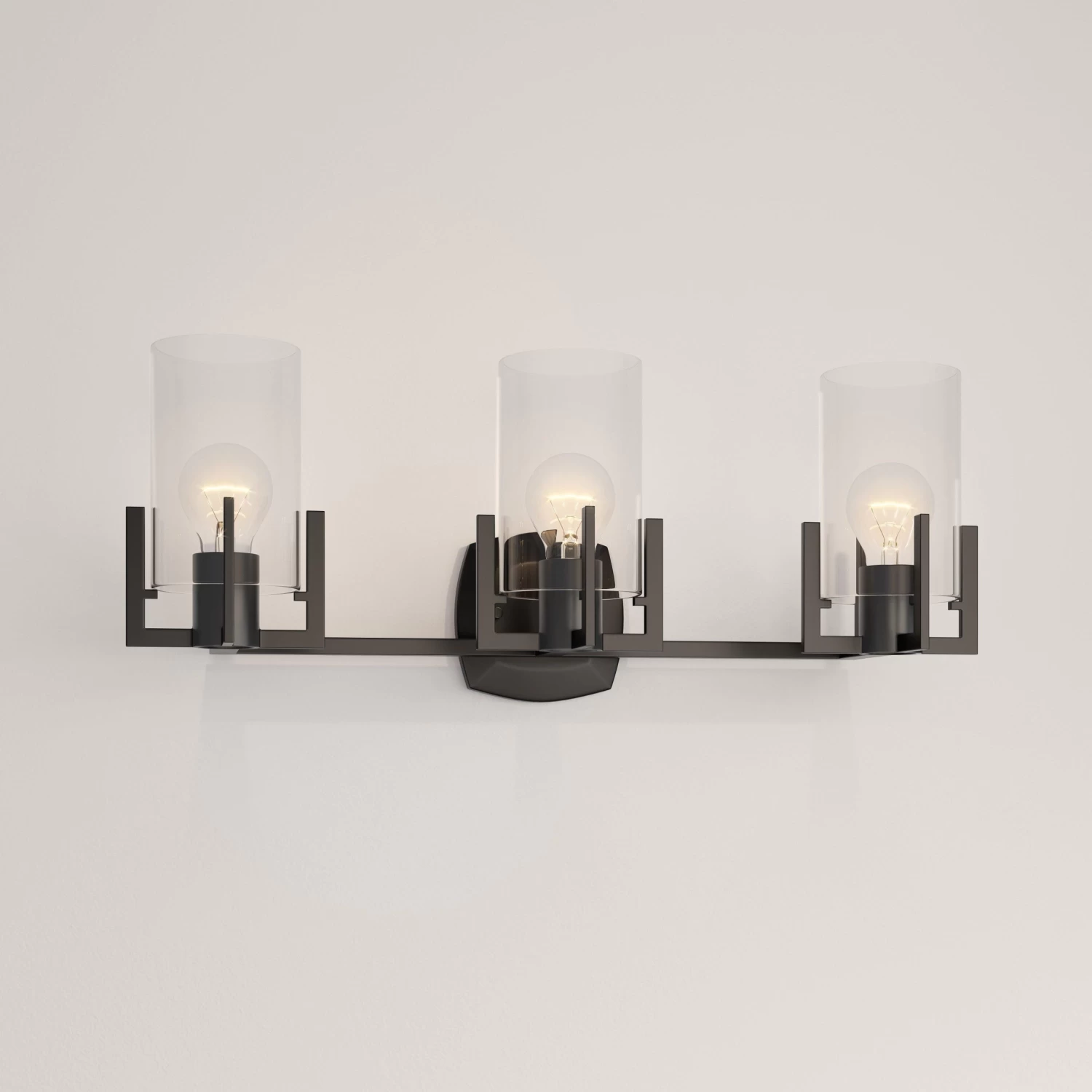 Perfect for bathrooms with a minimalist design, the Bercken 3-Light Vanity Light completes any chic upgrade. Cylinder-shaped glass shades line the top, casting a glow above your vanity. Its steel build ensures durability and confidence that this fixture will bring brightness to your space for many years.