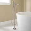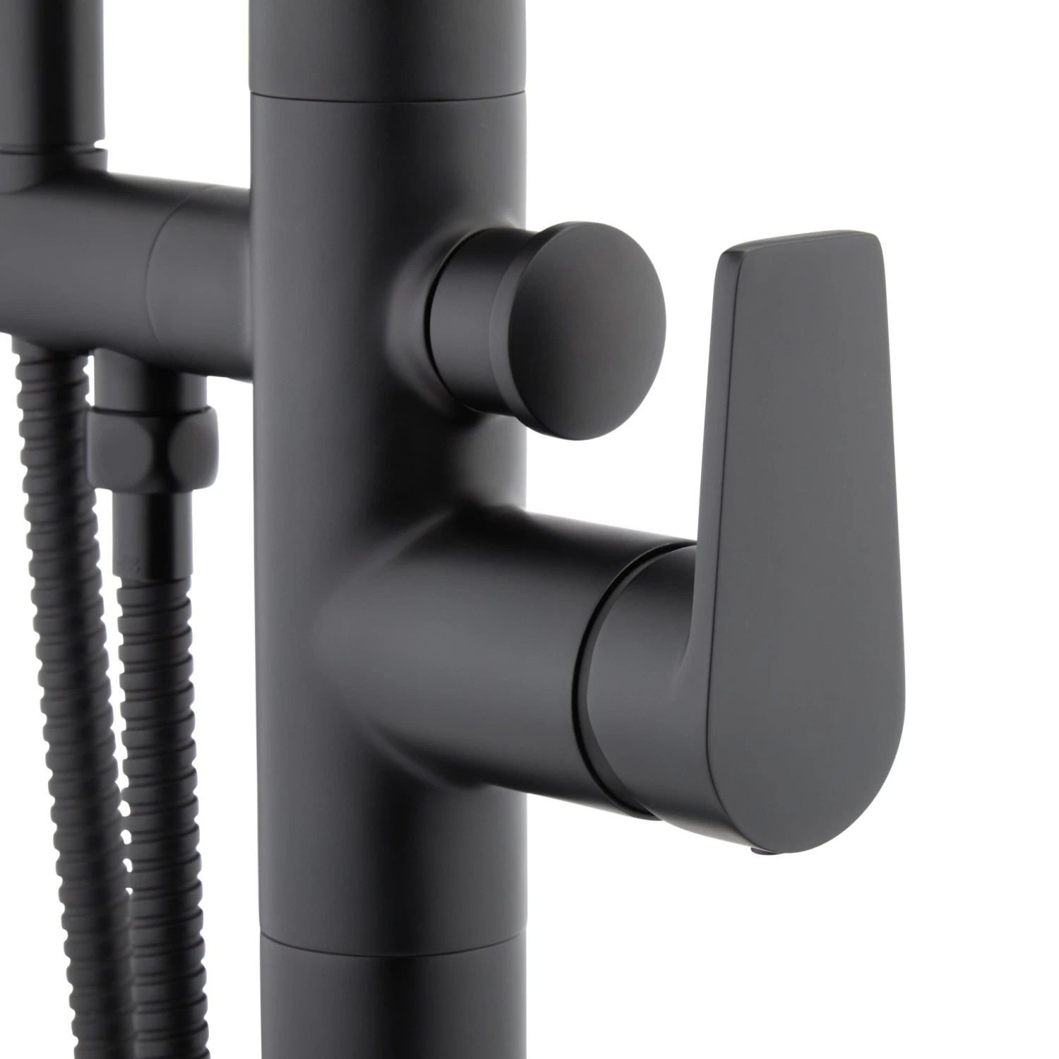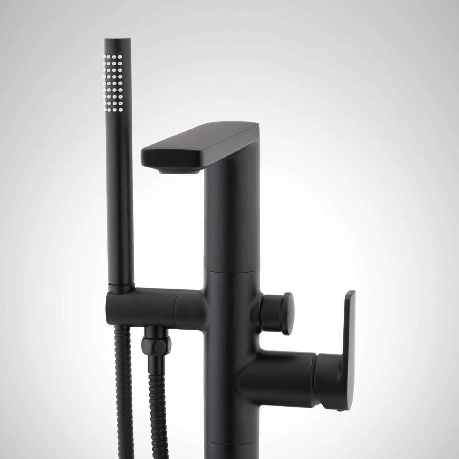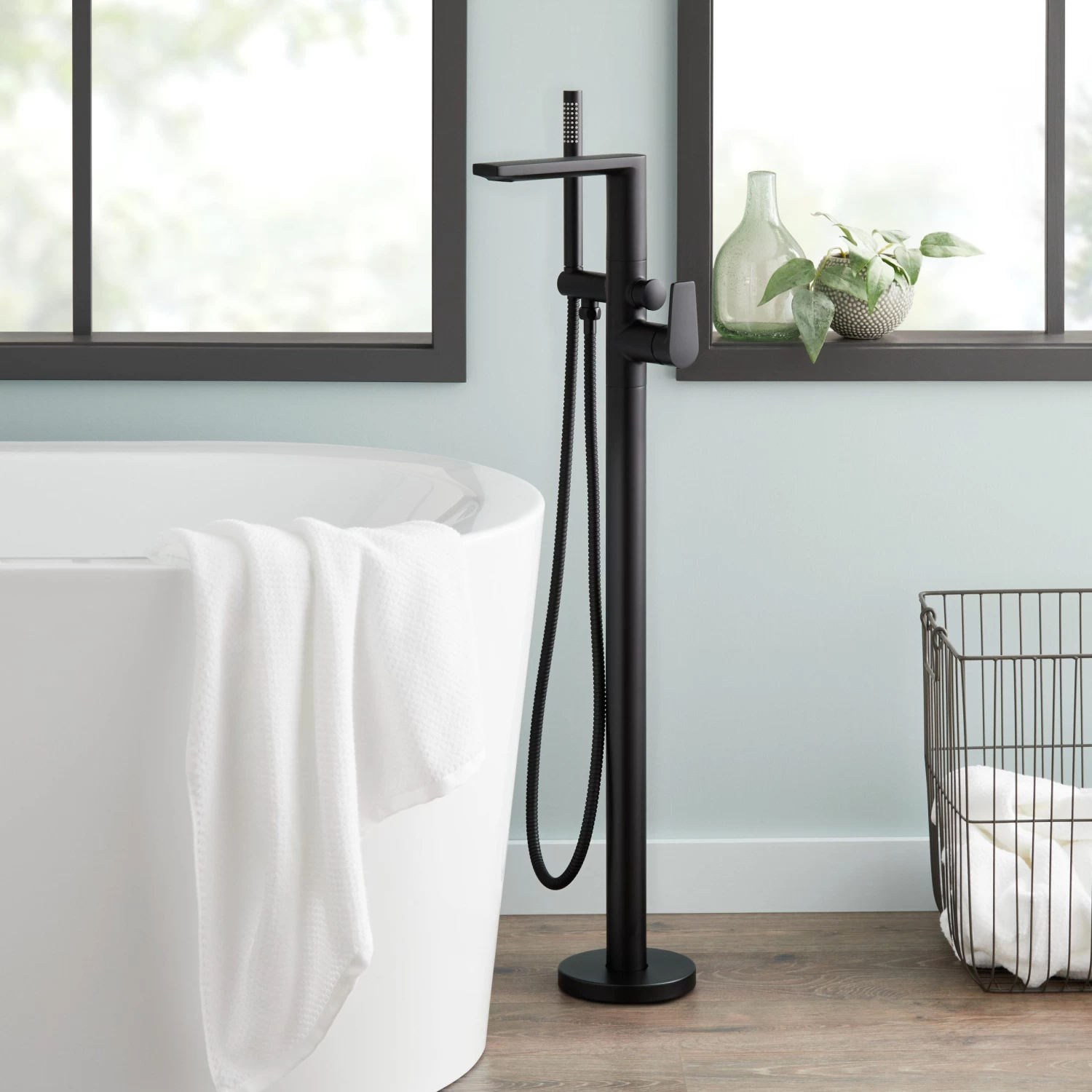 Complete your bathtub installation with the ultra-modern look of the Berwyn Freestanding Tub Faucet. Featuring an angular silhouette, this fixture mounts from the floor and comes with a convenient hand shower that allows you to rinse hard-to-reach areas with ease. Controlled by a single lever, the Berwyn is sure to elevate your space while remaining a sleek and timeless addition to your home. Choose your favorite finish to complete the look.