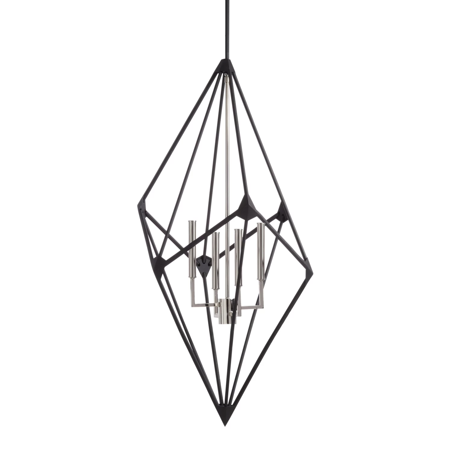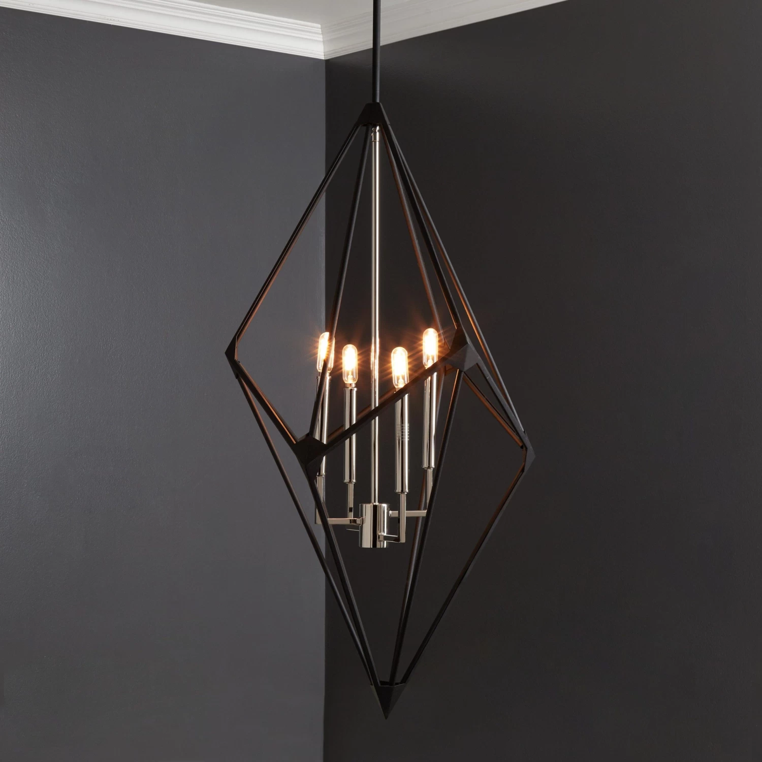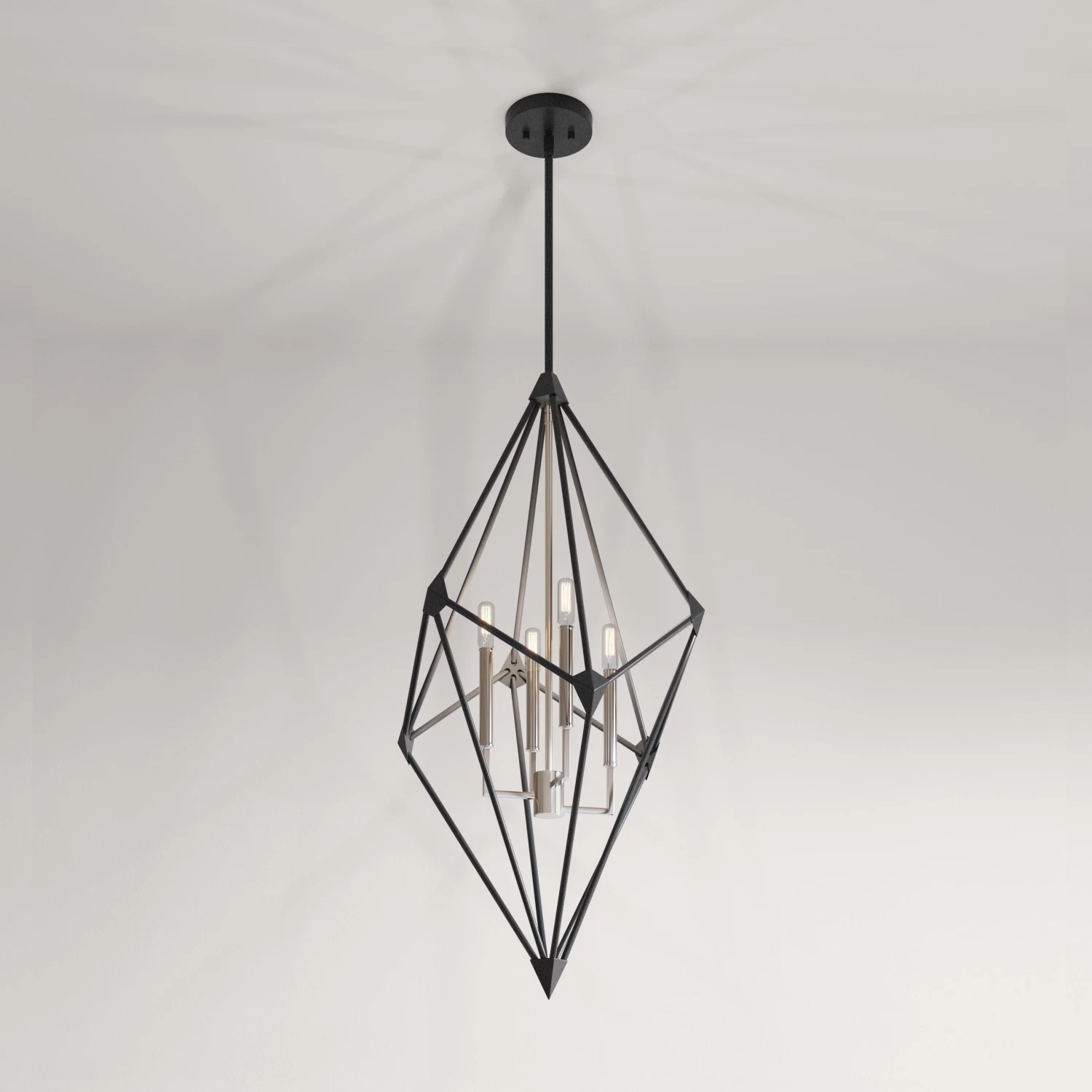 The shade is the star of the show on the Birchleaf 4-Light Pendant Chandelier. This eye-catching piece more than makes a statement with its artisan-quality design. The caged shade stands out in textured black, while the polished nickel metal within provides a subtle contrast. Four lights cast a bright yet unobtrusive glow that’s just right for brightening up any space and adding visual intrigue.