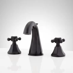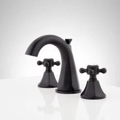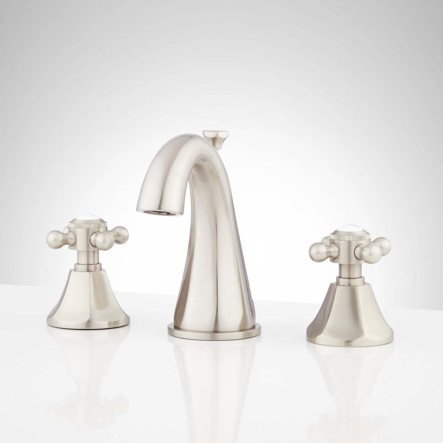 Featuring traditional cross handles with porcelain insets, the Boca Raton Widespread Gooseneck Faucet is perfect for a classic bathroom. Solid construction and a premium, corrosion-resistant finish promises lasting beauty and durability. Included is a matching pop-up drain, which is opened and closed by a lift rod located on the back of the faucet.