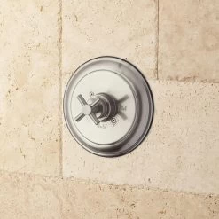 Indulge in the Bostonian Rainfall Shower Set, which has tapered nozzles and a swiveling head for a relaxing, tranquil spray. This set includes a mixing valve with a modern cross handle and is crafted of durable solid brass.