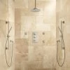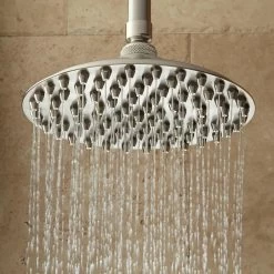 Add this ceiling mounted Bostonian shower head to your shower for a truly luxurious experience. By providing a continuous cascade of water, this oversized shower head is sure to relieve even the most weary muscles. Made from solid brass materials.