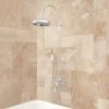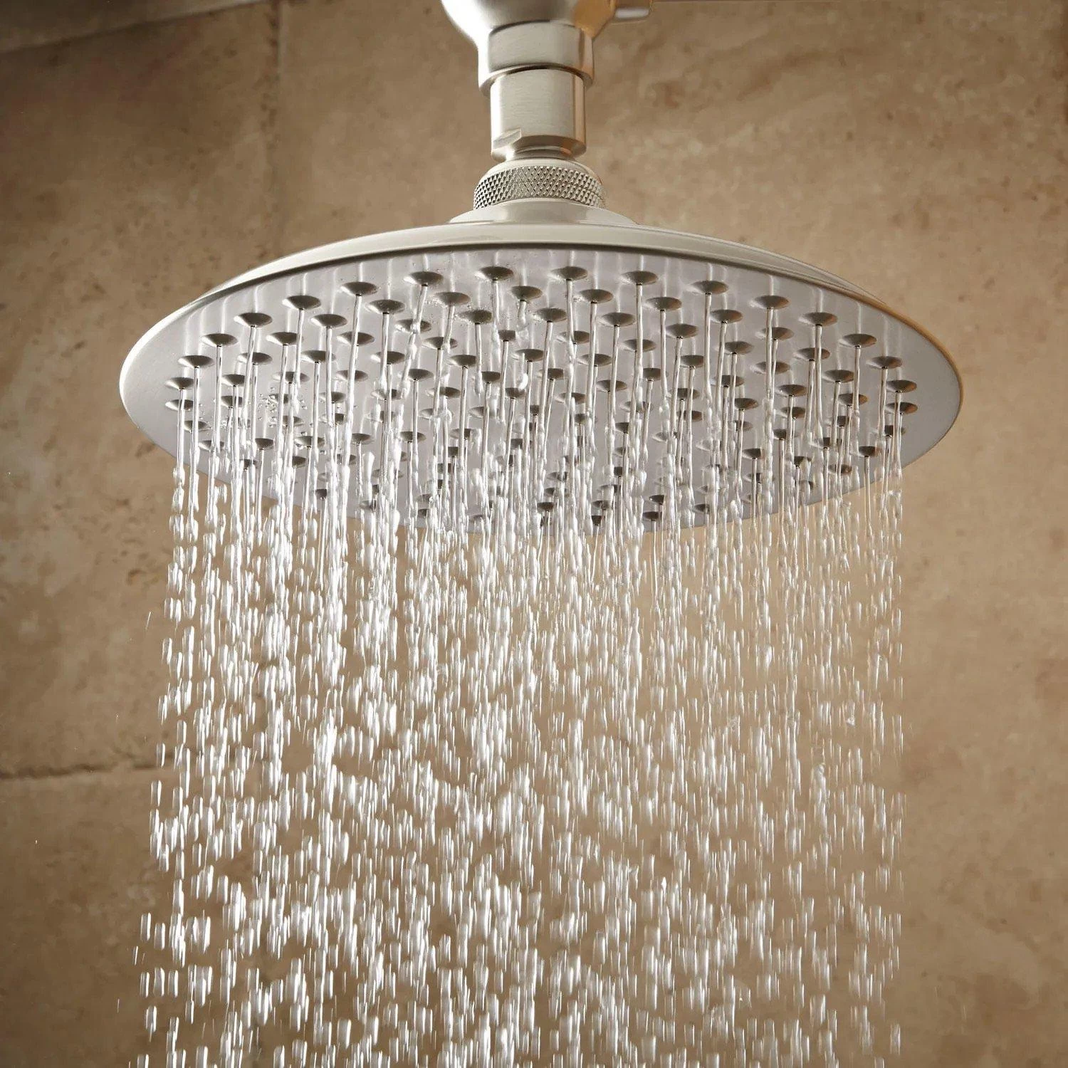 Set on an elevated S-shaped shower arm, the Bostonian Rainfall Shower provides a tranquil flow of water that mimics the sensation of a springtime downpour. This soothing shower features a swiveling head and a flat spray face with numerous pinpoint holes.