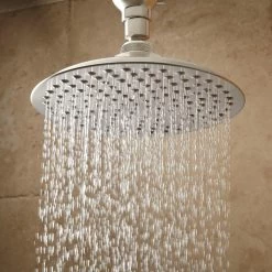 - 8″ and 10″ shower heads are adjustable and feature a swivel connection.