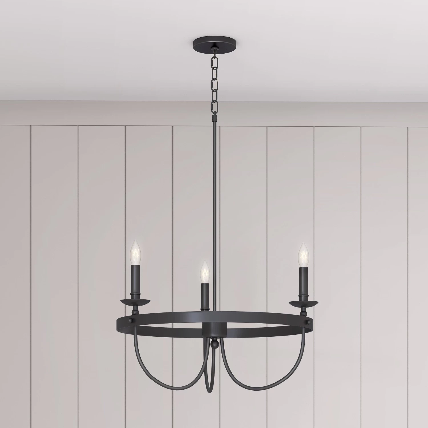 Give your dining room table or kitchen island traditional flair with the Buckram 3-Light Chandelier. Simple in design, this elegant metal fixture brings old-world style into your home. Additionally, its versatile design allows it to be installed on sloped ceilings. For added ambiance, pair with candelabra bulbs. Mounting hardware and a 60″ chain are included for easy installation.