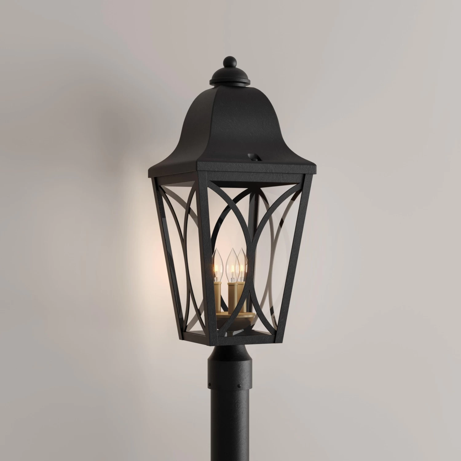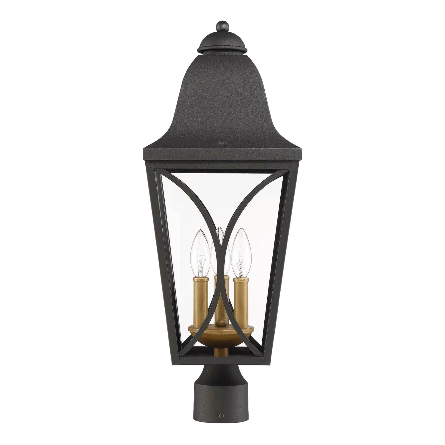 Add commanding style to your home with the Cardigan 3-Light Outdoor Post Lantern. Perfect for entryways and porches, this warm and inviting fixture boasts a traditional look and feel. Its stylish black bronze finish catches the eye with its dramatic hue while its clear glass shade holds space for three bulbs to adequately illuminate the area. Mounting hardware is included for easy installation.