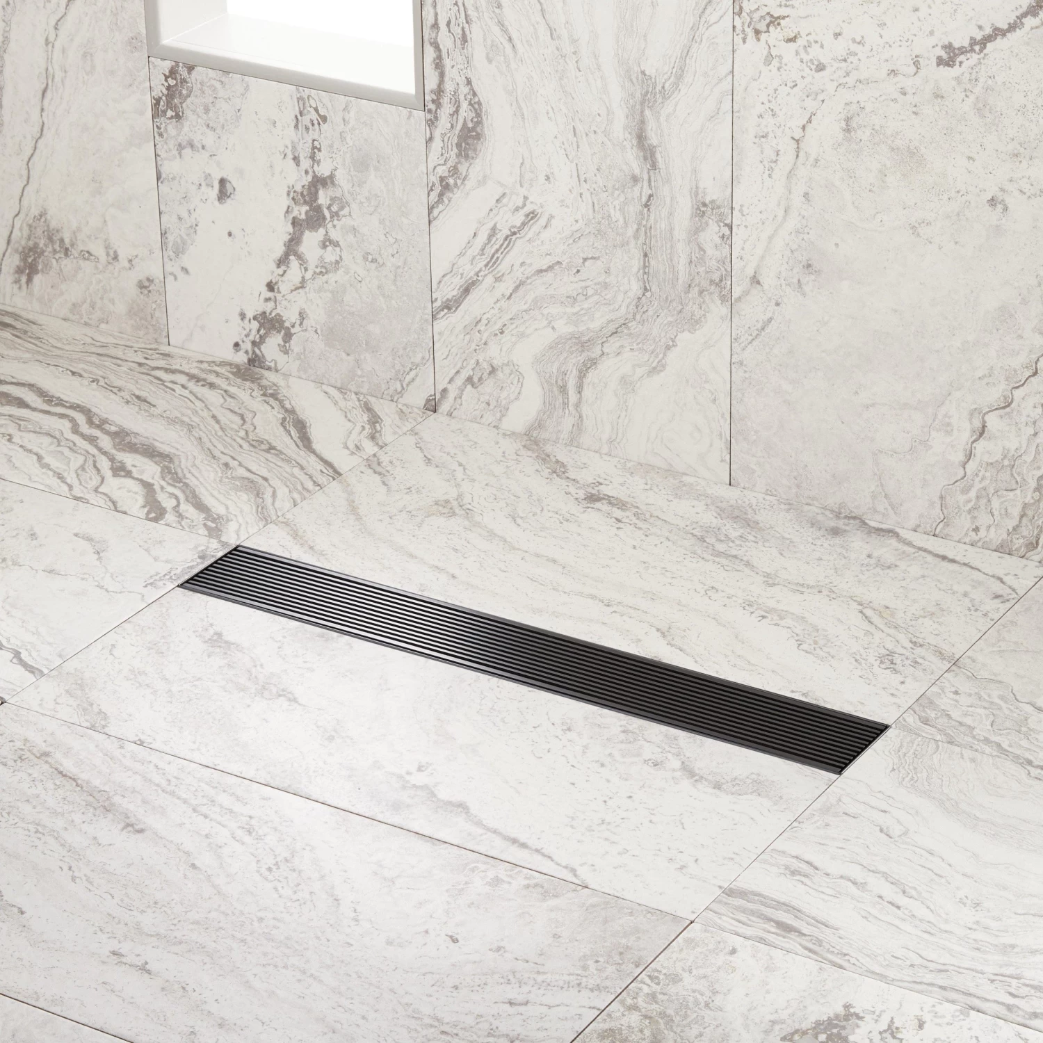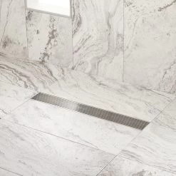 The Carmen Linear Shower Drain is the perfect addition to any modern bathroom. This stainless steel drain is lined with slots to quickly empty your shower of excess water.
