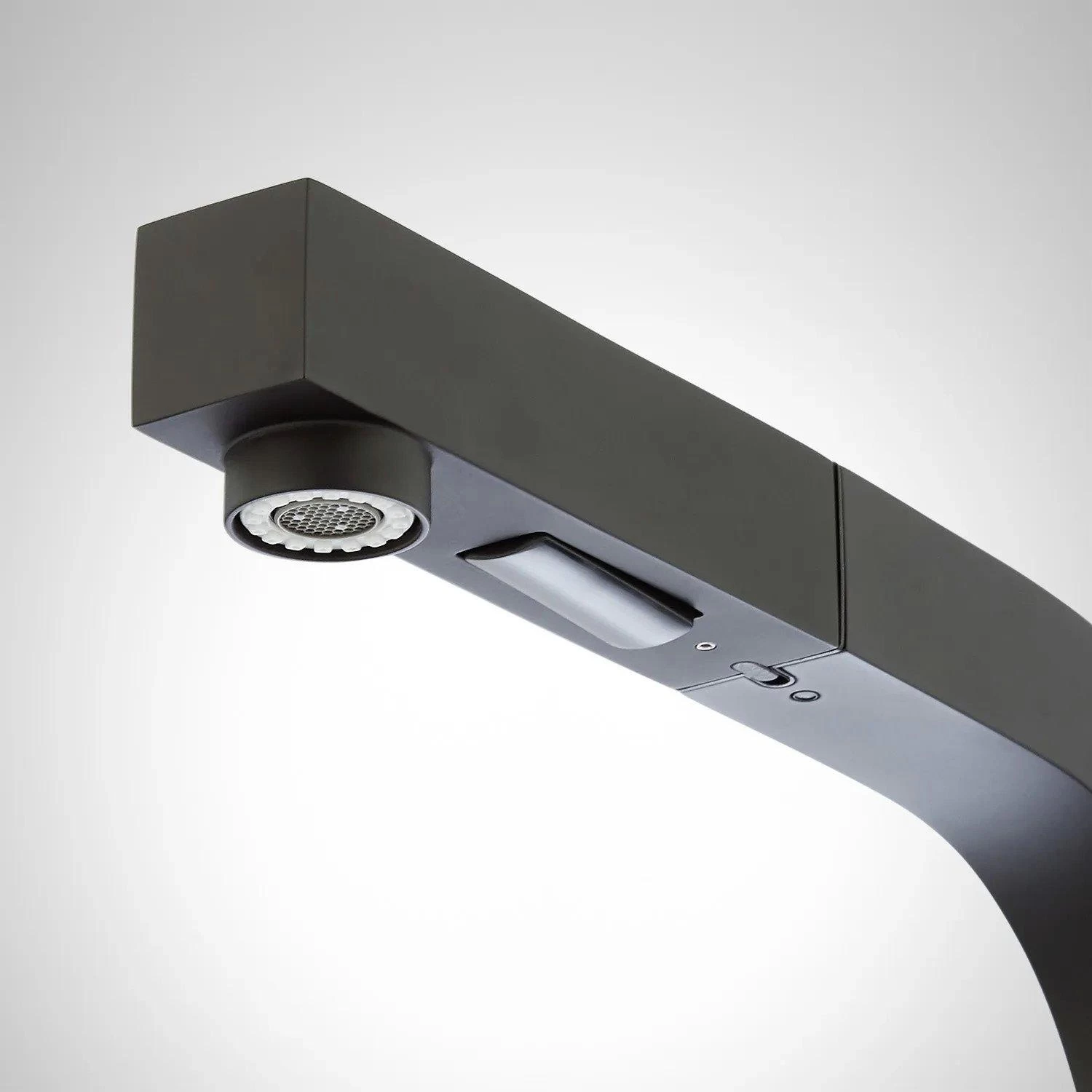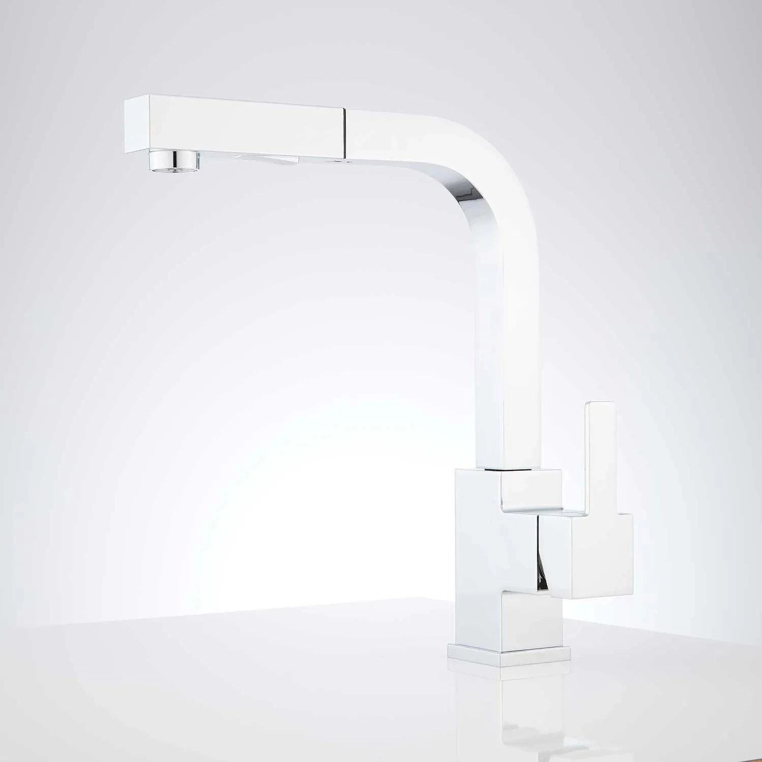 Enhance the style of your kitchen with the Castor Faucet. The design is chic and simple, with a squared handle, base, and body leading to the dual-function sprayer, which pulls-out to offer easy access to hard-to-reach areas of the sink. All parts are covered in a tarnish-resistant finish to coordinate with your kitchen decor.