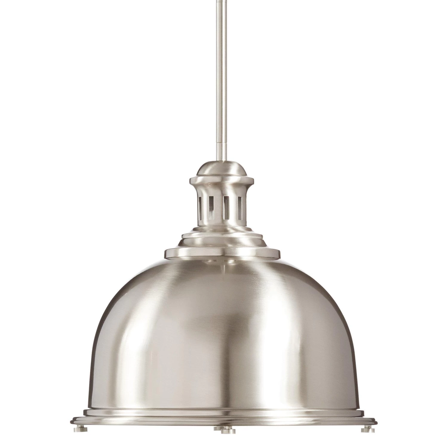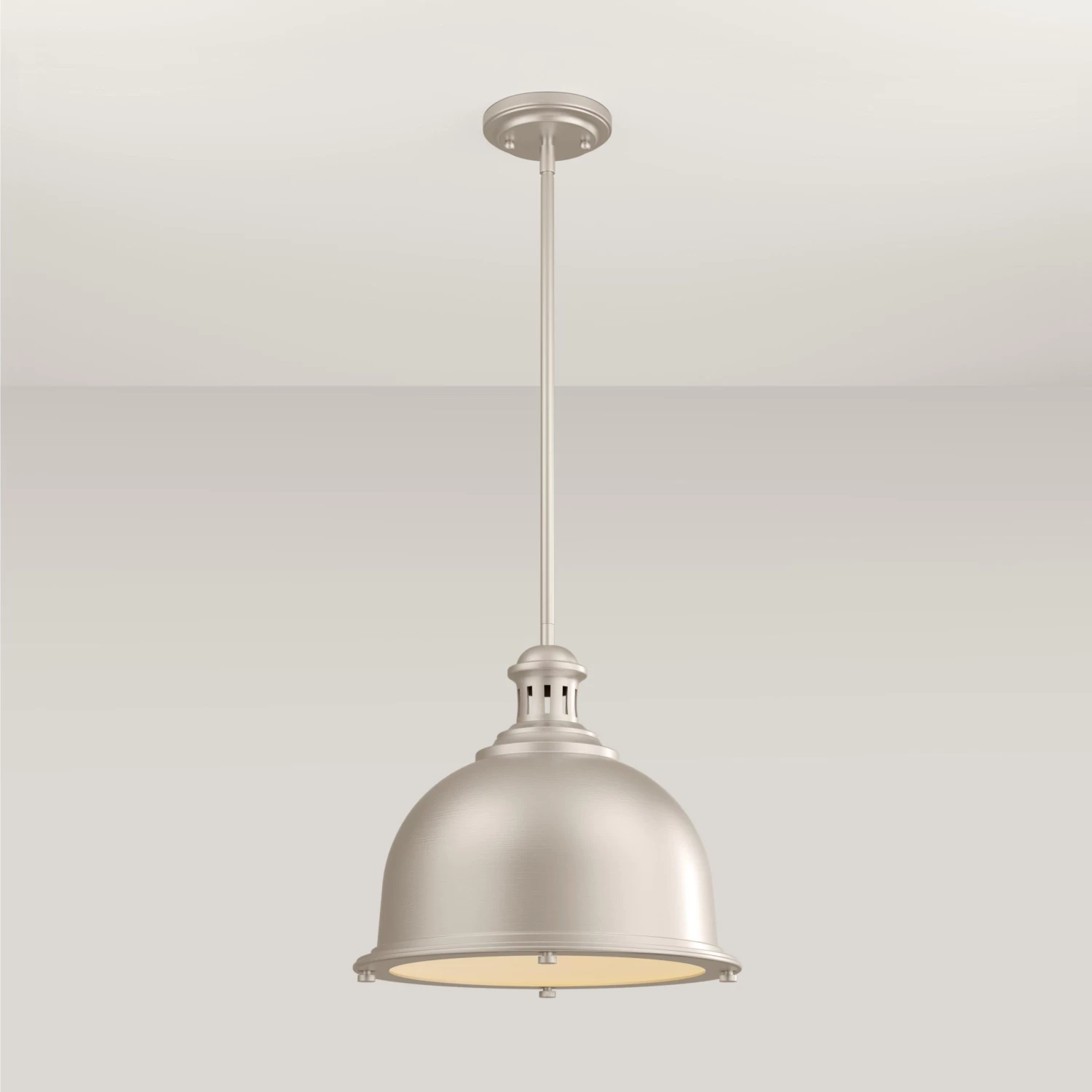 Tastefully designed, the Chisum Dome Pendant Light brings a dash of charm as it illuminates your space. Crafted of metal, this lamp features bits of traditional styling in its timeless appeal. A sturdy downrod suspends the bowl-shaped unit from the ceiling to ensure light is directed downward. Mounting hardware is included for easy installation.
